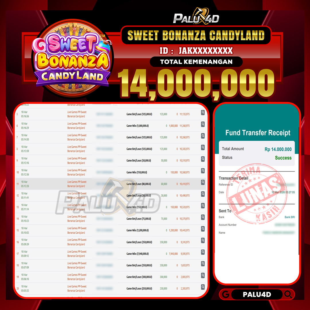 PALU4D – Menang Live Games SWEET BONANZA CANDYLAND Rp.14.000.000.,- LUNAS PALU4D – Selamat bagi pemenang yang mendapatkan jackpot hari ini 10 MARET […]