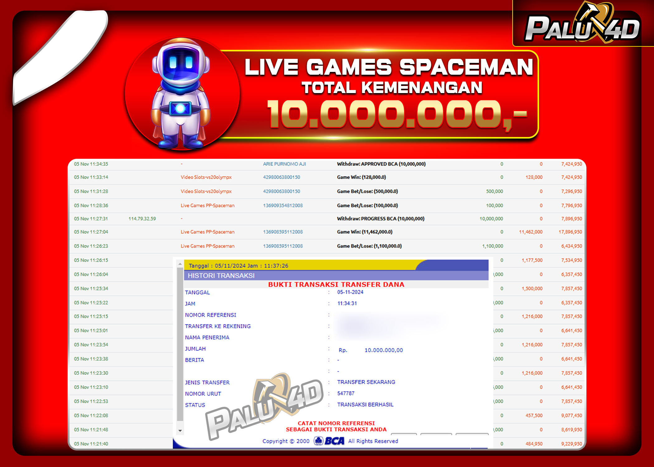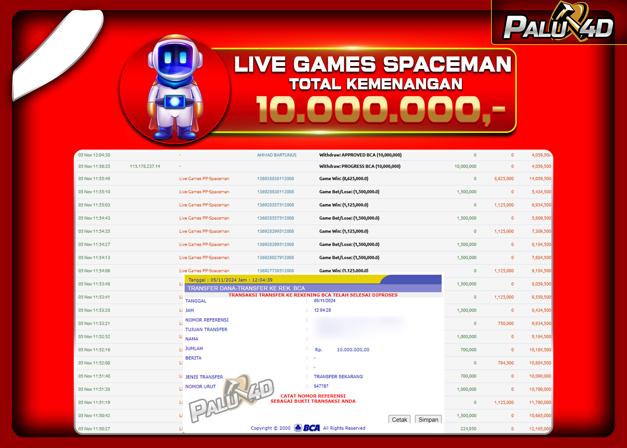 06/11/2024LIVE CASINO PALU4D – Menang LIVE CASINO SPACEMAN Rp.10.000.000.,- LUNAS PALU4D – Menang LIVE CASINO SPACEMAN Rp.10.000.000.,- LUNAS PALU4D – Selamat bagi pemenang yang mendapatkan jackpot hari ini 5 November 2024 di […]