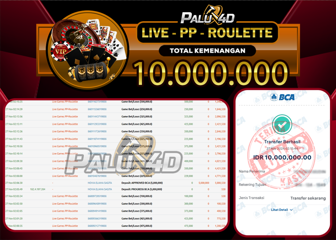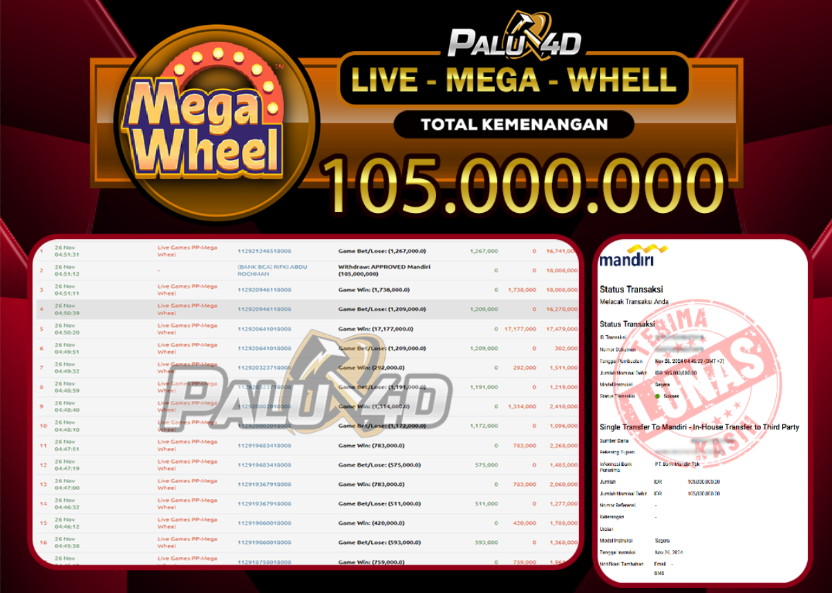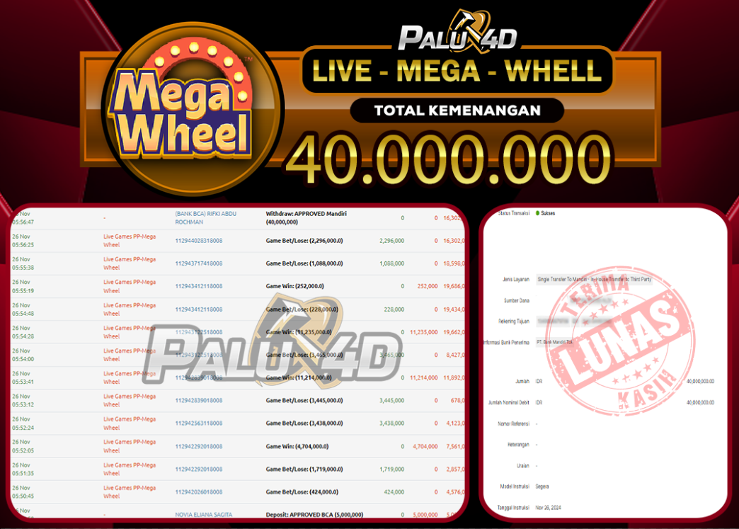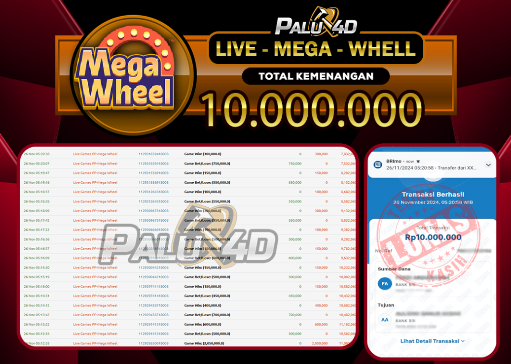 02/12/2024LIVE CASINO PALU4D – Menang LIVE CASINO MEGA WHEEL Rp.105.000.000.,- LUNAS PALU4D – Menang LIVE CASINO MEGA WHEEL Rp.105.000.000.,- LUNAS PALU4D – Selamat bagi pemenang yang mendapatkan jackpot hari ini 26 November 2024 […]