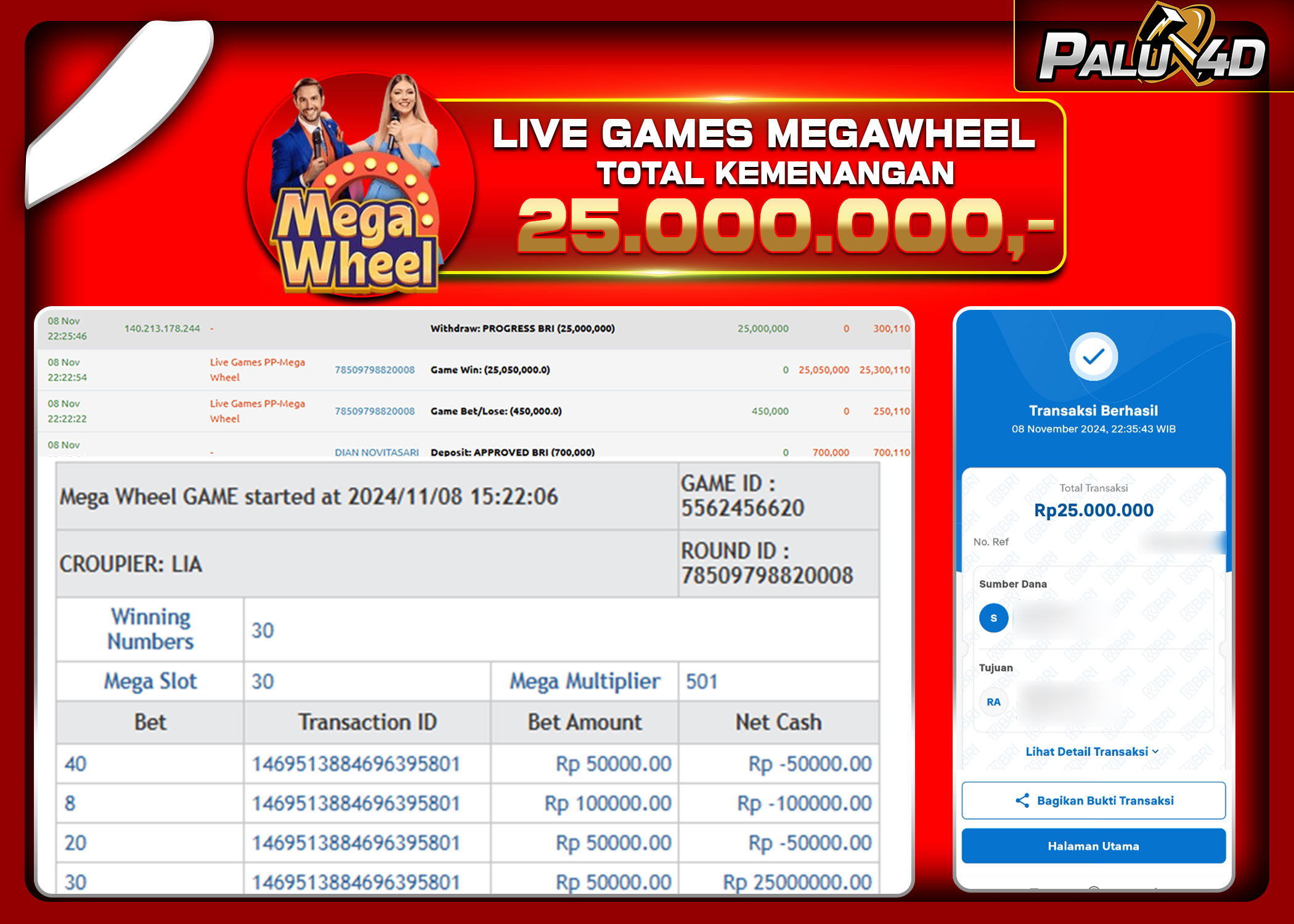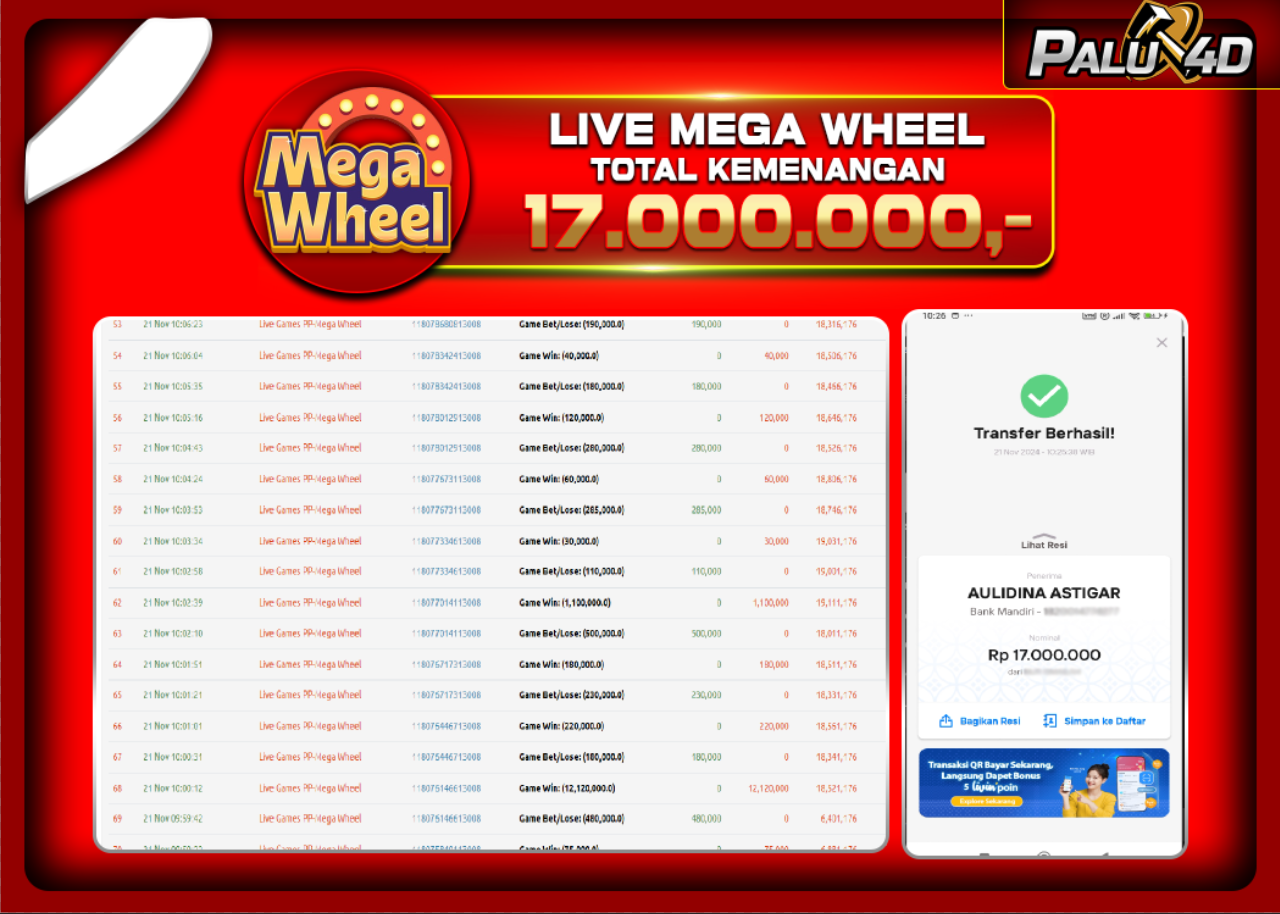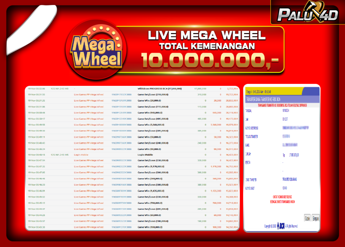 02/12/202402/12/2024LIVE CASINO PALU4D – Menang LIVE CASINO MEGA WHEEL Rp.25.000.000.,- LUNAS PALU4D – Menang LIVE CASINO MEGA WHEEL Rp.25.000.000.,- LUNAS PALU4D – Selamat bagi pemenang yang mendapatkan jackpot hari ini 8 November 2024 […]