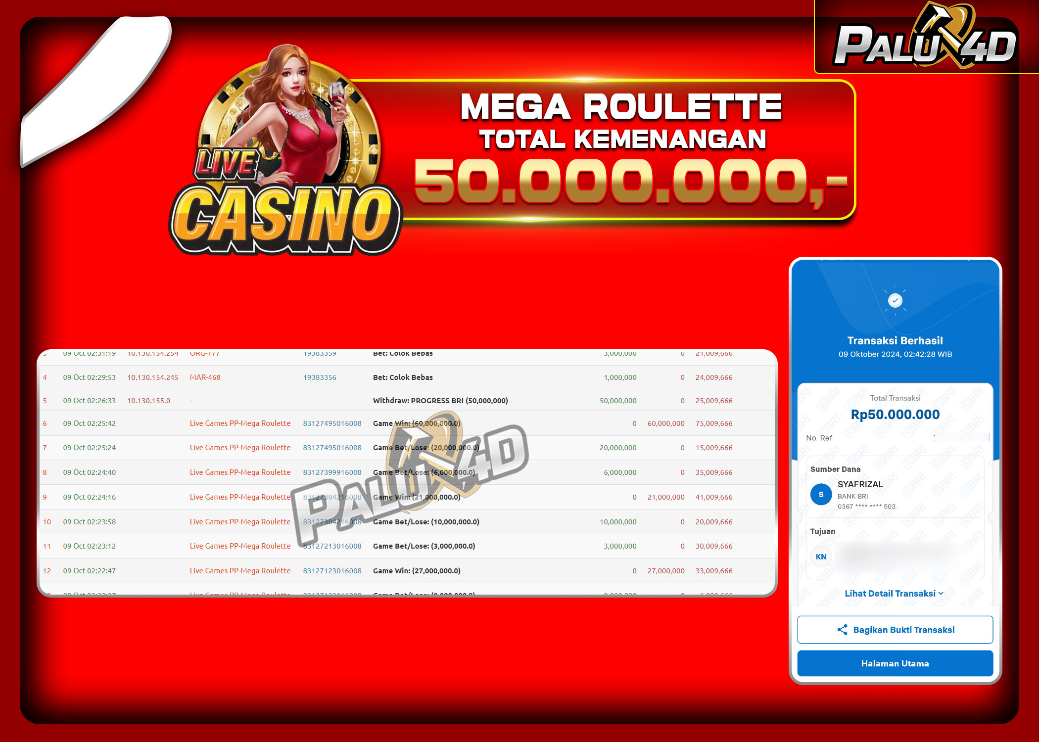 08/10/2024LIVE CASINO PALU4D – Menang LIVE CASINO MEGA ROULETTE Rp.50.000.000.,- LUNAS PALU4D – Menang LIVE CASINO MEGA ROULETTE Rp.50.000.000.,- LUNAS PALU4D – Selamat bagi pemenang yang mendapatkan jackpot hari ini 9 Oktober 2024 […]