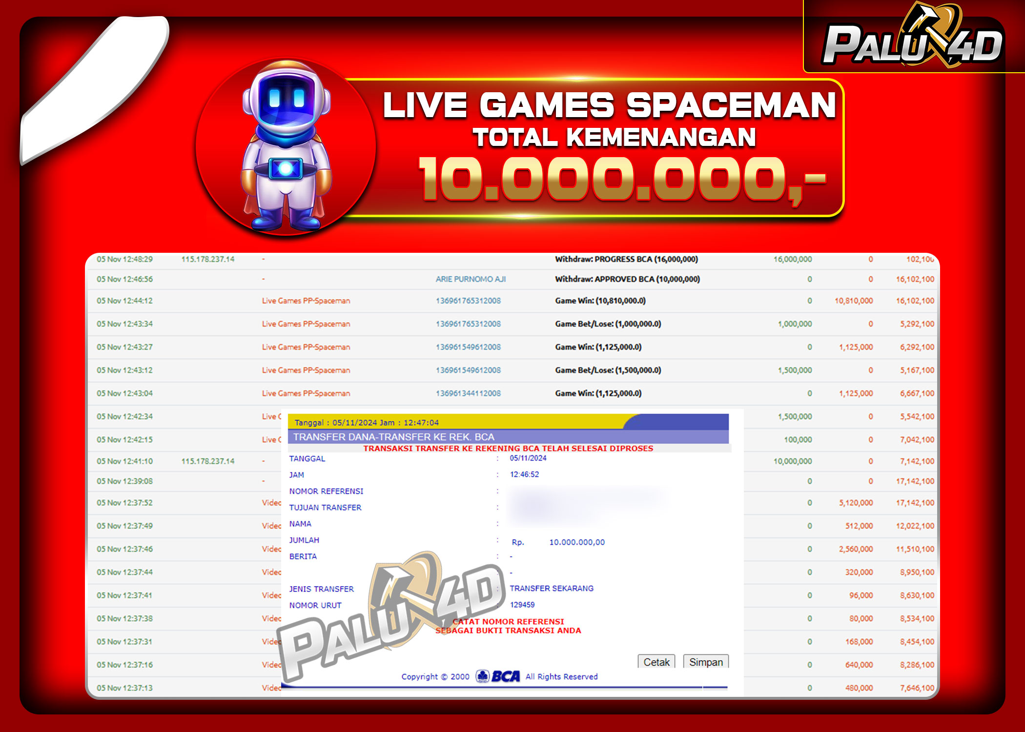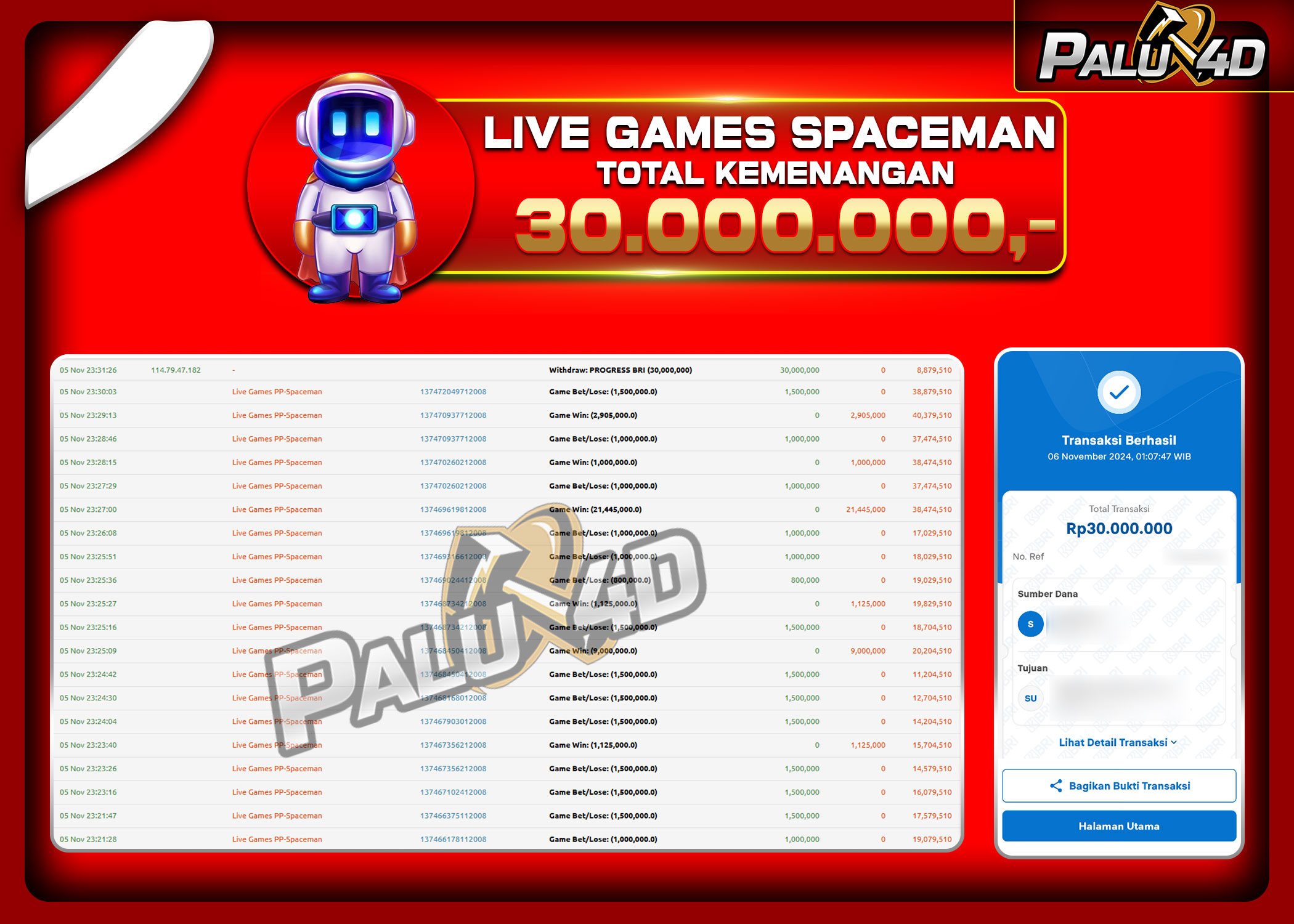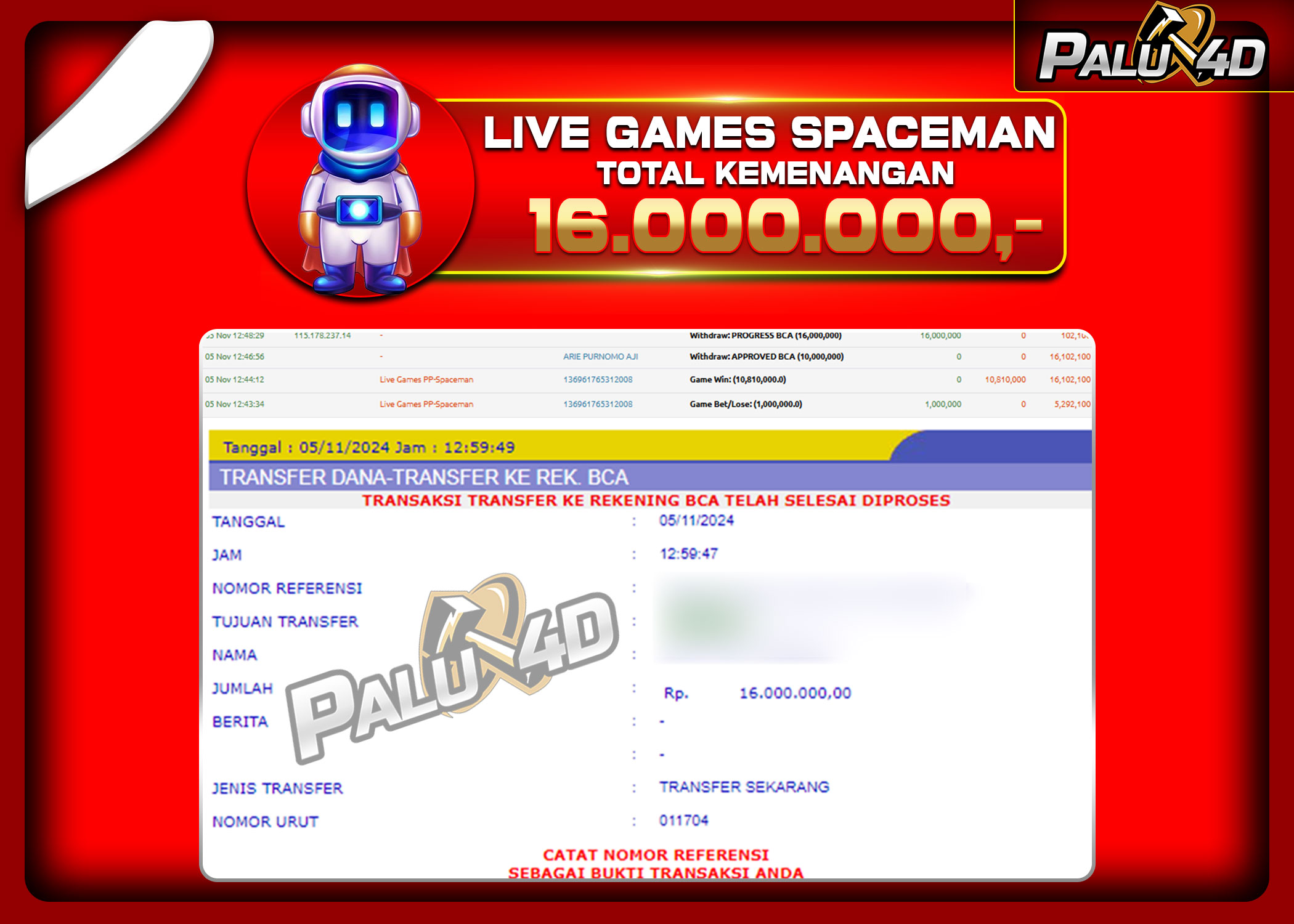 06/11/202406/11/2024LIVE CASINO PALU4D – Menang LIVE CASINO SPACEMAN Rp.16.000.000.,- LUNAS PALU4D – Menang LIVE CASINO SPACEMAN Rp.16.000.000.,- LUNAS PALU4D – Selamat bagi pemenang yang mendapatkan jackpot hari ini 5 November 2024 di […]