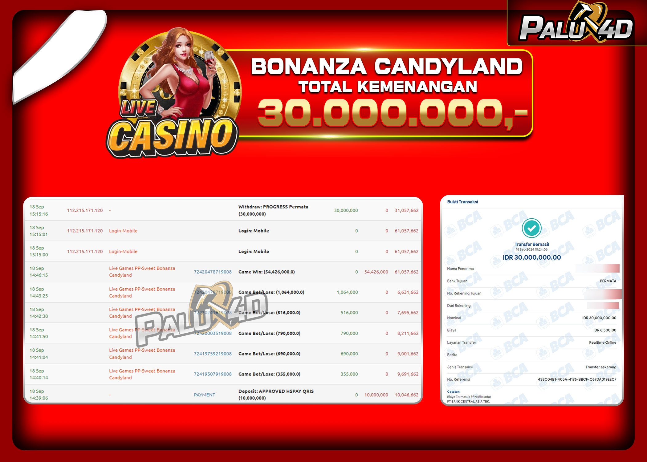 PALU4D – Menang LIVE CASINO SWEET BONANZA CANDYLAND Rp.30.000.000.,- LUNAS PALU4D – Selamat bagi pemenang yang mendapatkan jackpot hari ini 18 SEPTEMBER […]