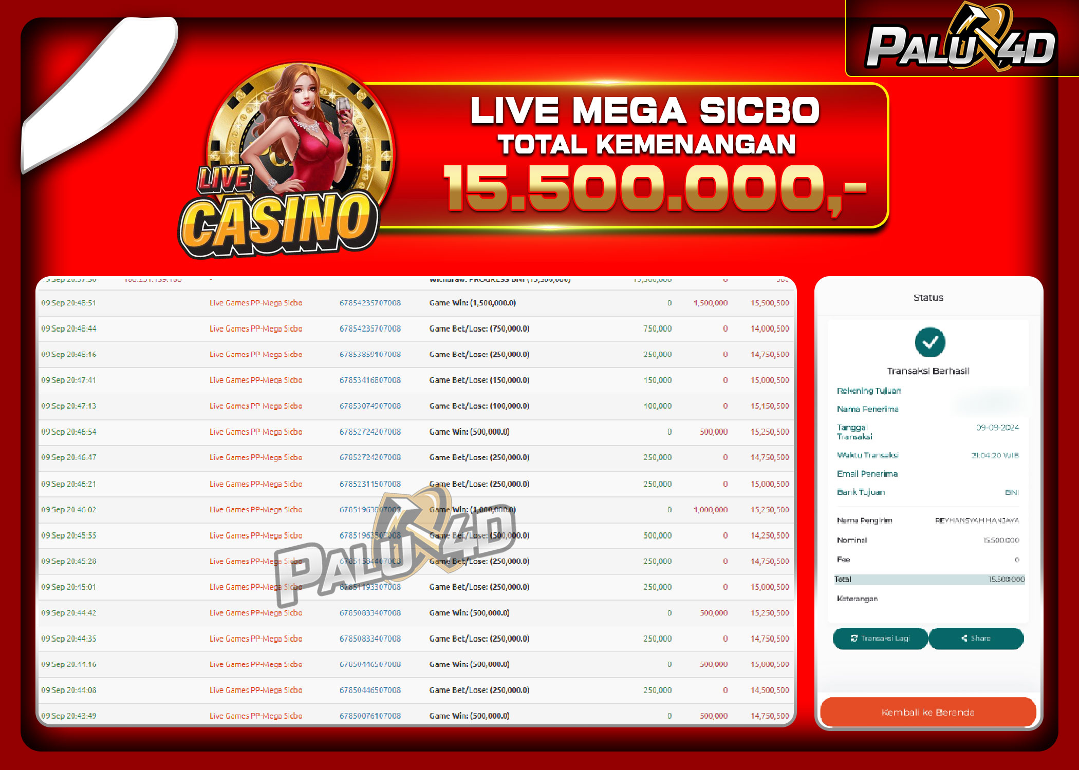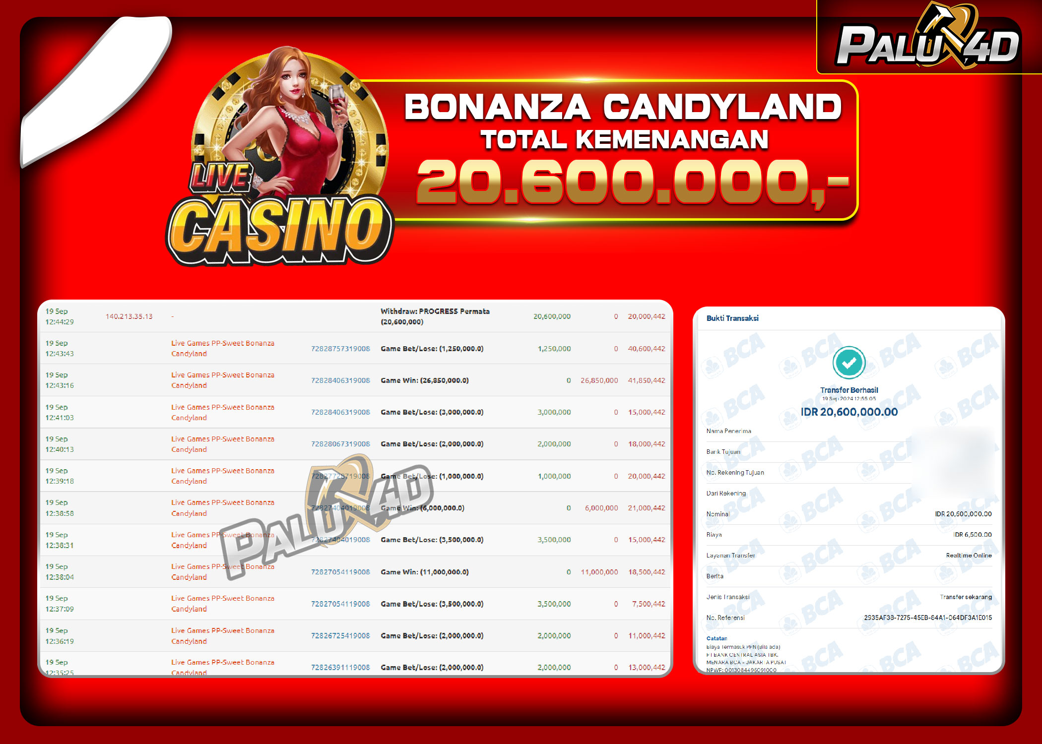 PALU4D – Menang LIVE CASINO SWEET BONANZA CANDYLAND Rp.20.000.000.,- LUNAS PALU4D – Selamat bagi pemenang yang mendapatkan jackpot hari ini 17 SEPTEMBER […]