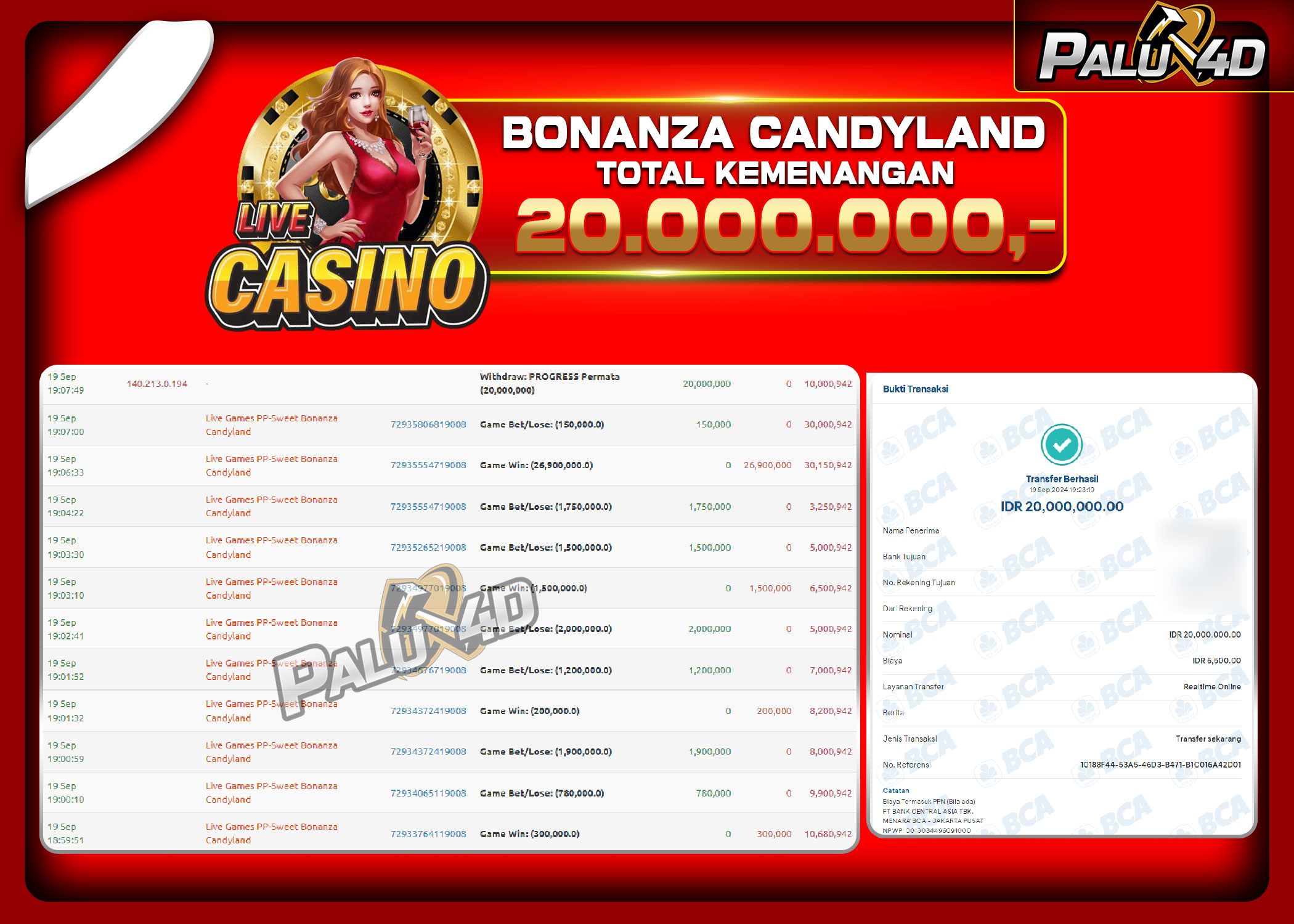 PALU4D – Menang LIVE CASINO SWEET BONANZA CANDYLAND Rp.20.000.000.,- LUNAS PALU4D – Selamat bagi pemenang yang mendapatkan jackpot hari ini 19 SEPTEMBER […]