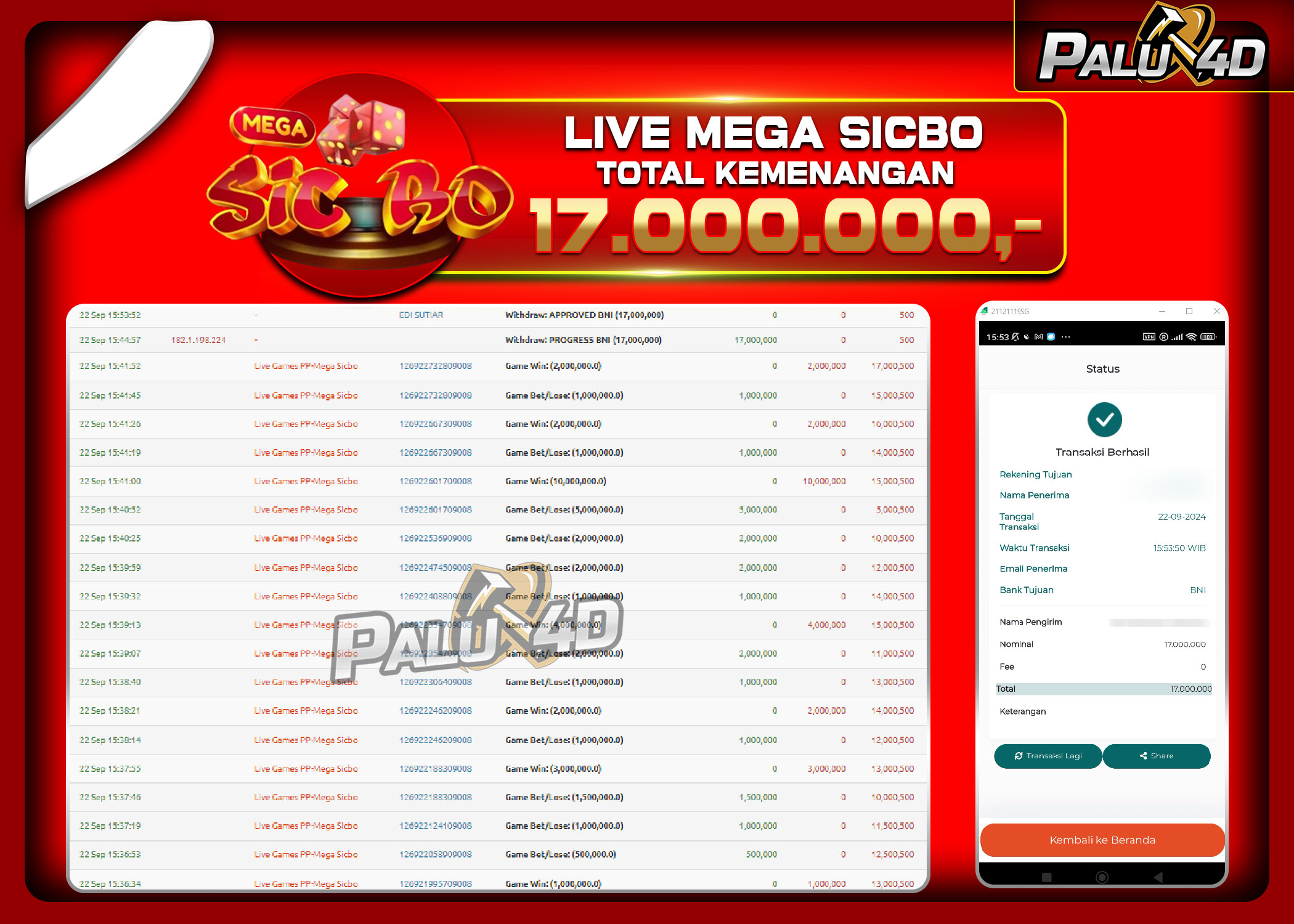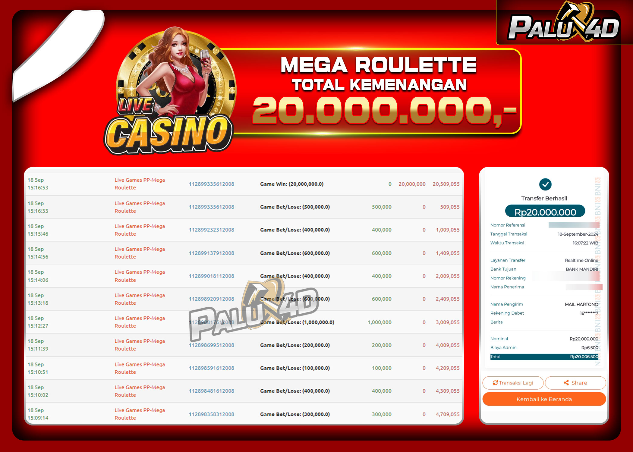 PALU4D – Menang LIVE CASINO MEGA ROULETTE Rp.20.000.000.,- LUNAS PALU4D – Selamat bagi pemenang yang mendapatkan jackpot hari ini 18 SEPTEMBER 2024 […]