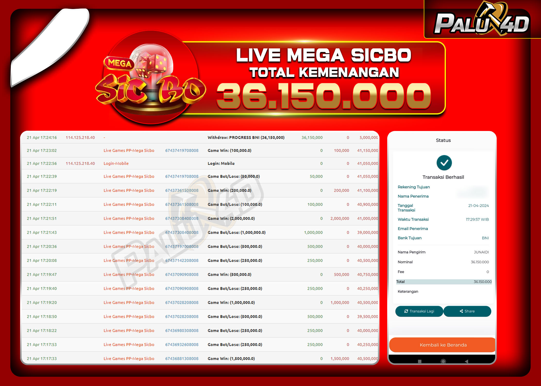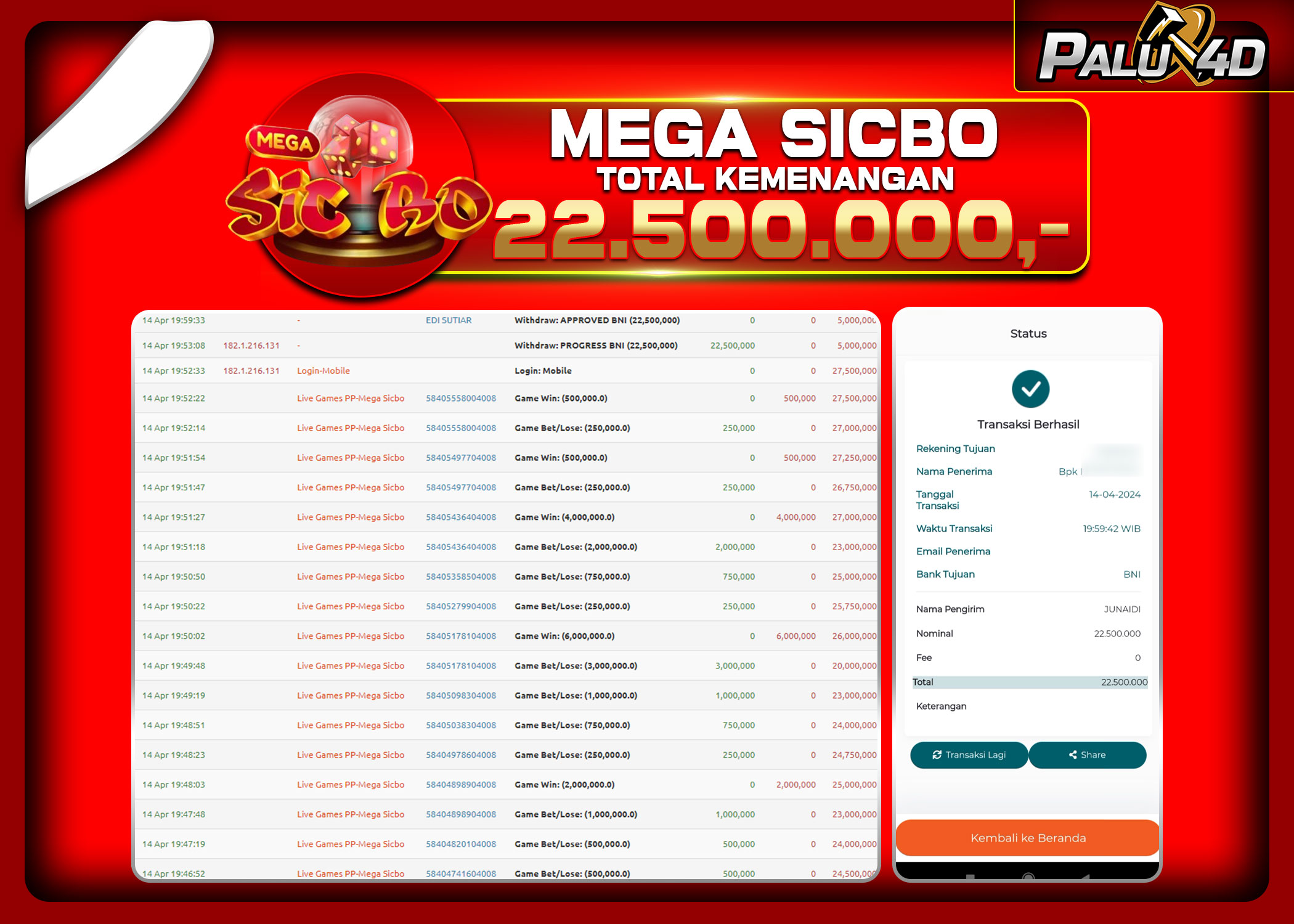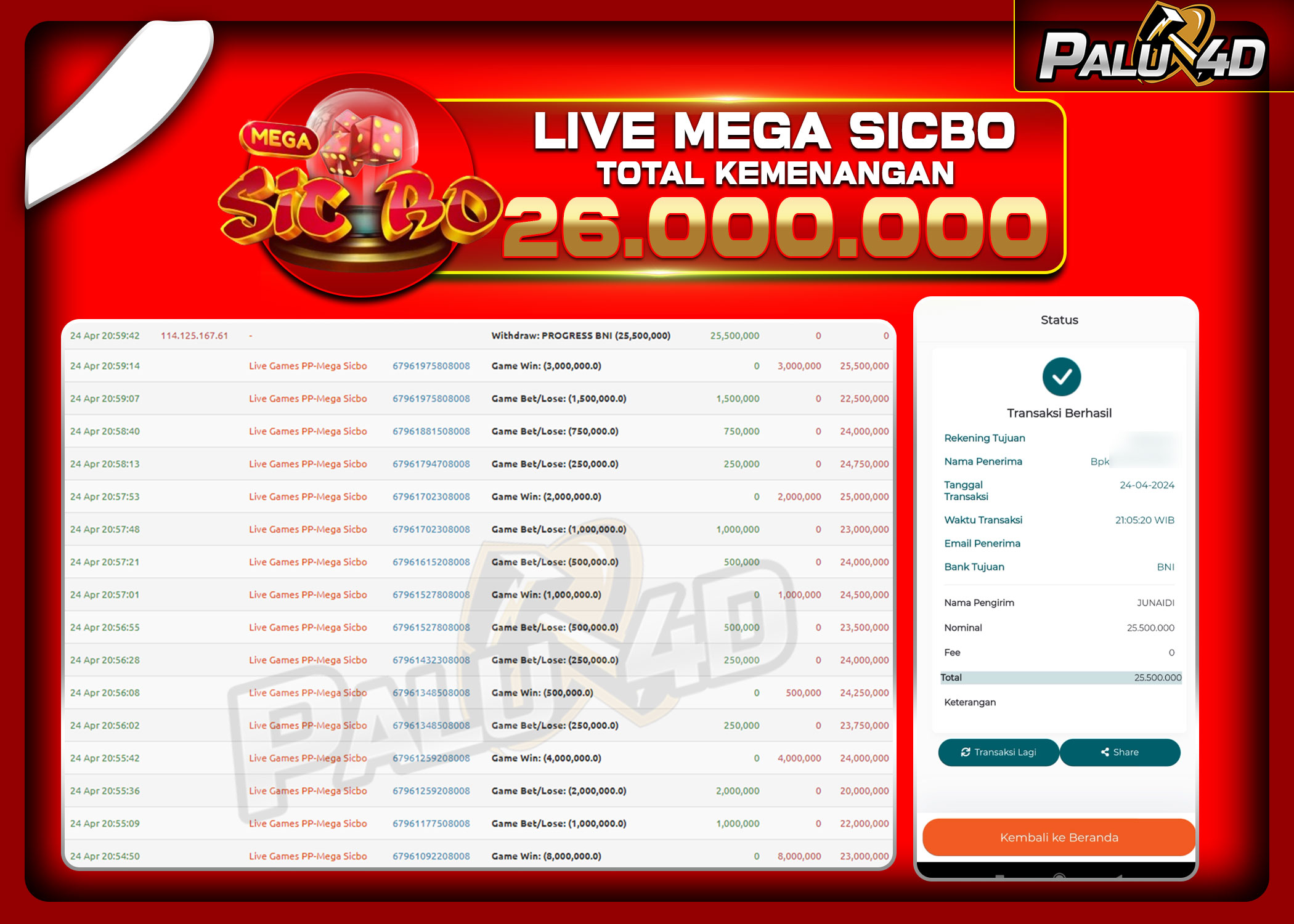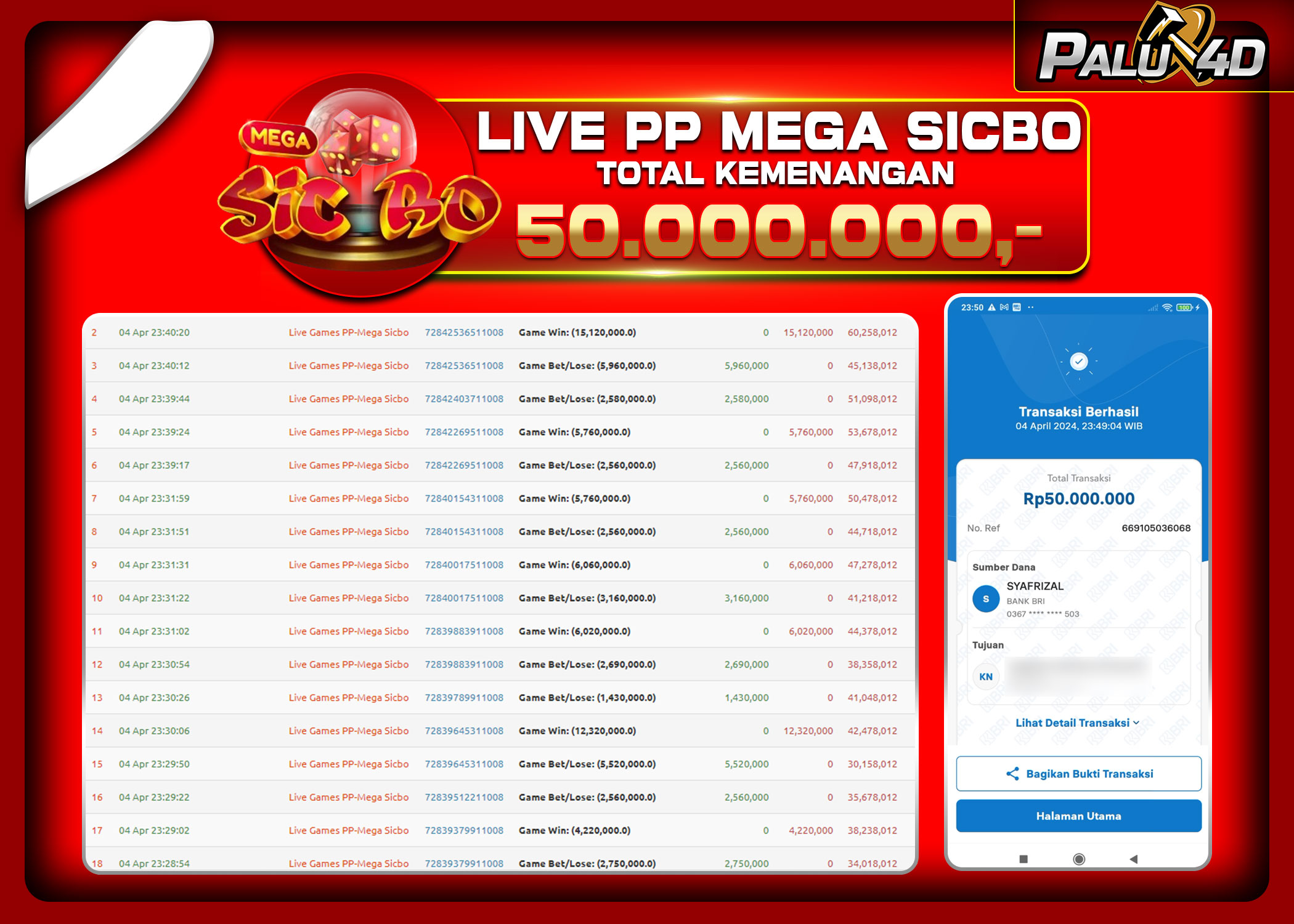 28/05/2024LIVE CASINO PALU4D – Menang Live Games MEGA SICBO Rp50.000.000.,- LUNAS PALU4D – Menang Live Games MEGA SICBO Rp50.000.000.,- LUNAS PALU4D – Selamat bagi pemenang yang mendapatkan jackpot hari ini 4 April 2024 […]
