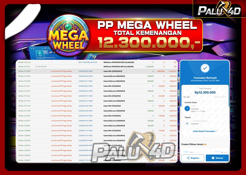 06/12/202506/12/2025LIVE CASINO PALU4D – Menang LIVE CASINO MEGA WHEEL Rp.12.300.000.,- PALU4D – Menang LIVE CASINO MEGA WHEEL Rp.12.300.000.,- LUNAS PALU4D – Selamat bagi pemenang yang mendapatkan jackpot hari ini 29 NOVEMBER 2025 […]