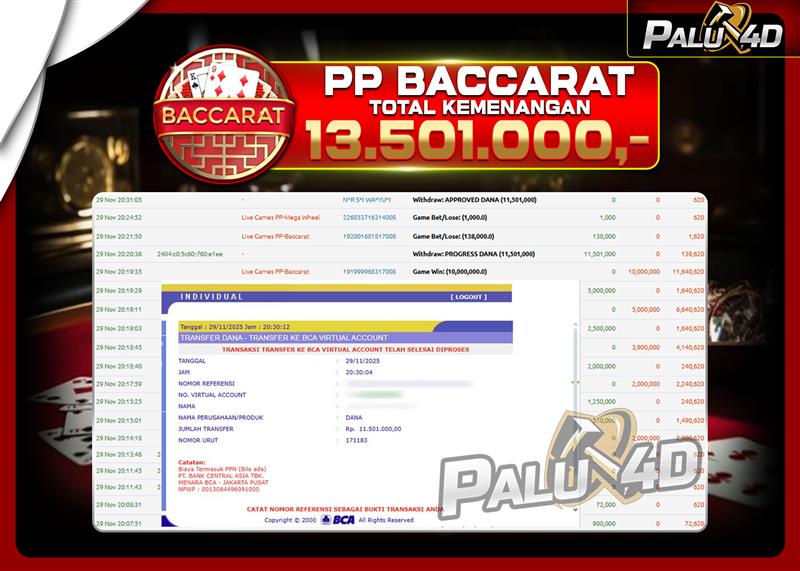 06/12/2025LIVE CASINO PALU4D – Menang Live Games BACCARAT Rp.13.501.000.,- LUNAS PALU4D – Menang Live Games BACCARAT Rp.13.501.000.,- LUNAS PALU4D – Selamat bagi pemenang yang mendapatkan jackpot hari ini 29 NOVEMBER 2025 di […]