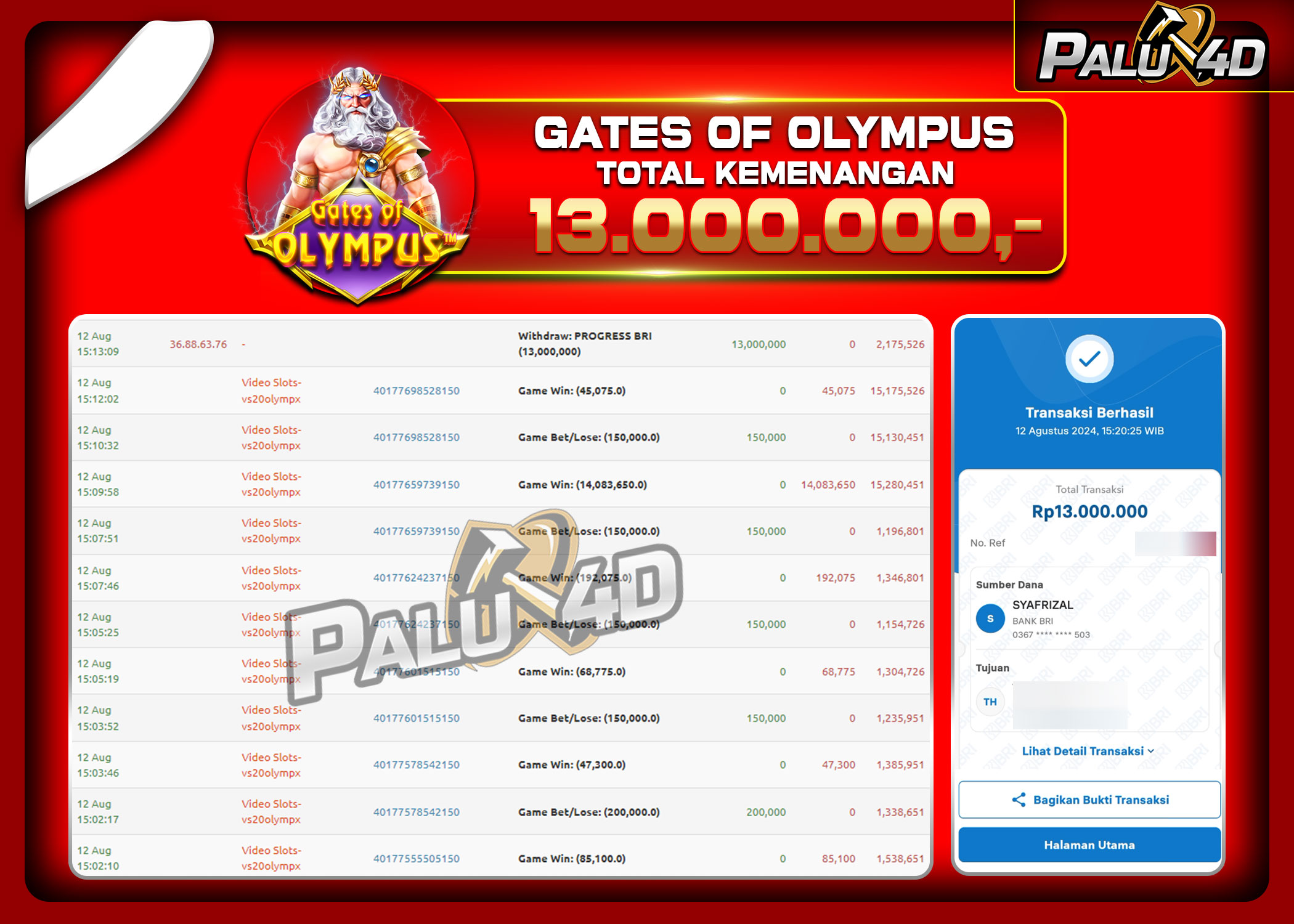 12/08/2024SLOT PALU4D – Menang Slot GATES OF OLYMPUS Rp.13.000.000.,- LUNAS v PALU4D – Menang Slot GATES OF OLYMPUS Rp.13.000.000.,- LUNAS PALU4D – Selamat bagi pemenang yang mendapatkan jackpot hari ini 12 Agustus […]