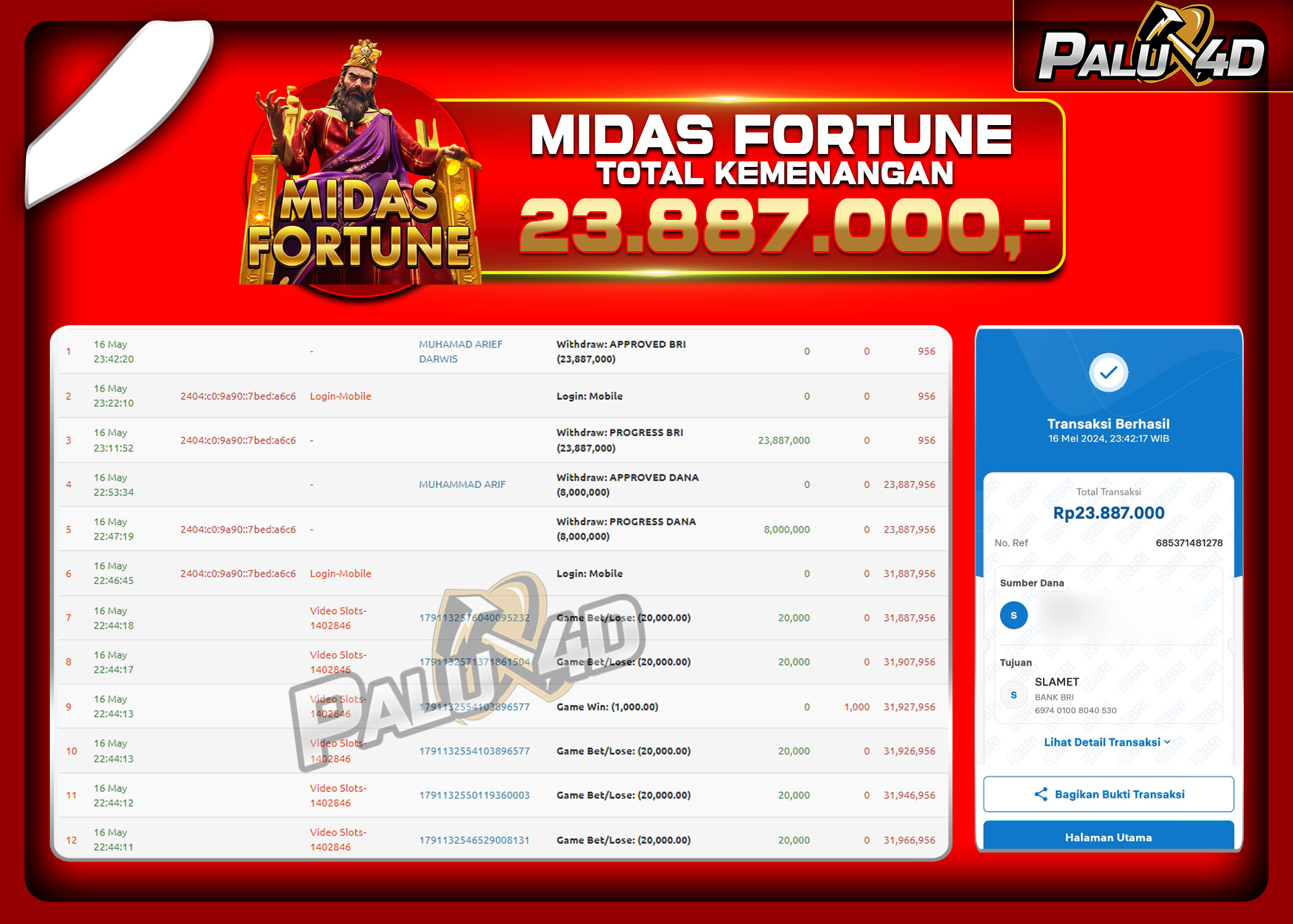 PALU4D – Menang Slot MIDAS FORTUNE Rp.23.887.000.,- LUNAS