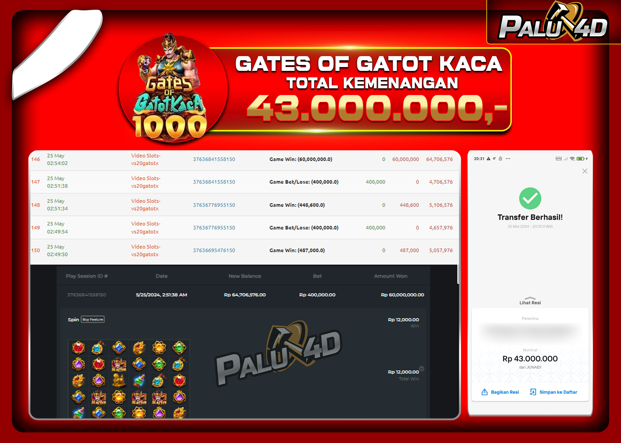 PALU4D – Menang Slot GATES OF GATOT KACA  Rp.43.000.000.,- LUNAS