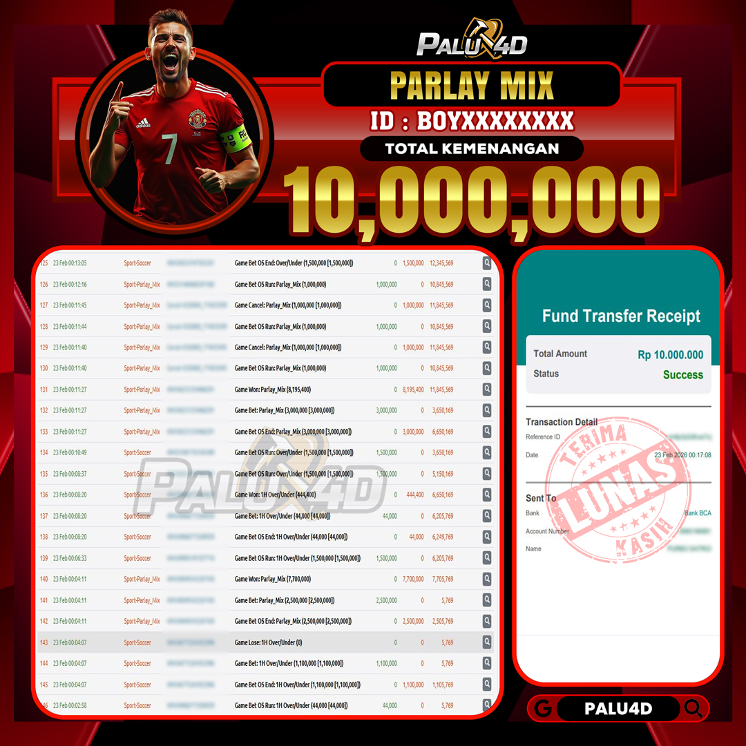 PALU4D – Menang SPORTBOOKS TARUHAN BOLA Rp.10.000.000.,- LUNAS PALU4D – Selamat bagi pemenang yang mendapatkan jackpot hari ini 23 Februari 2026 di game […]