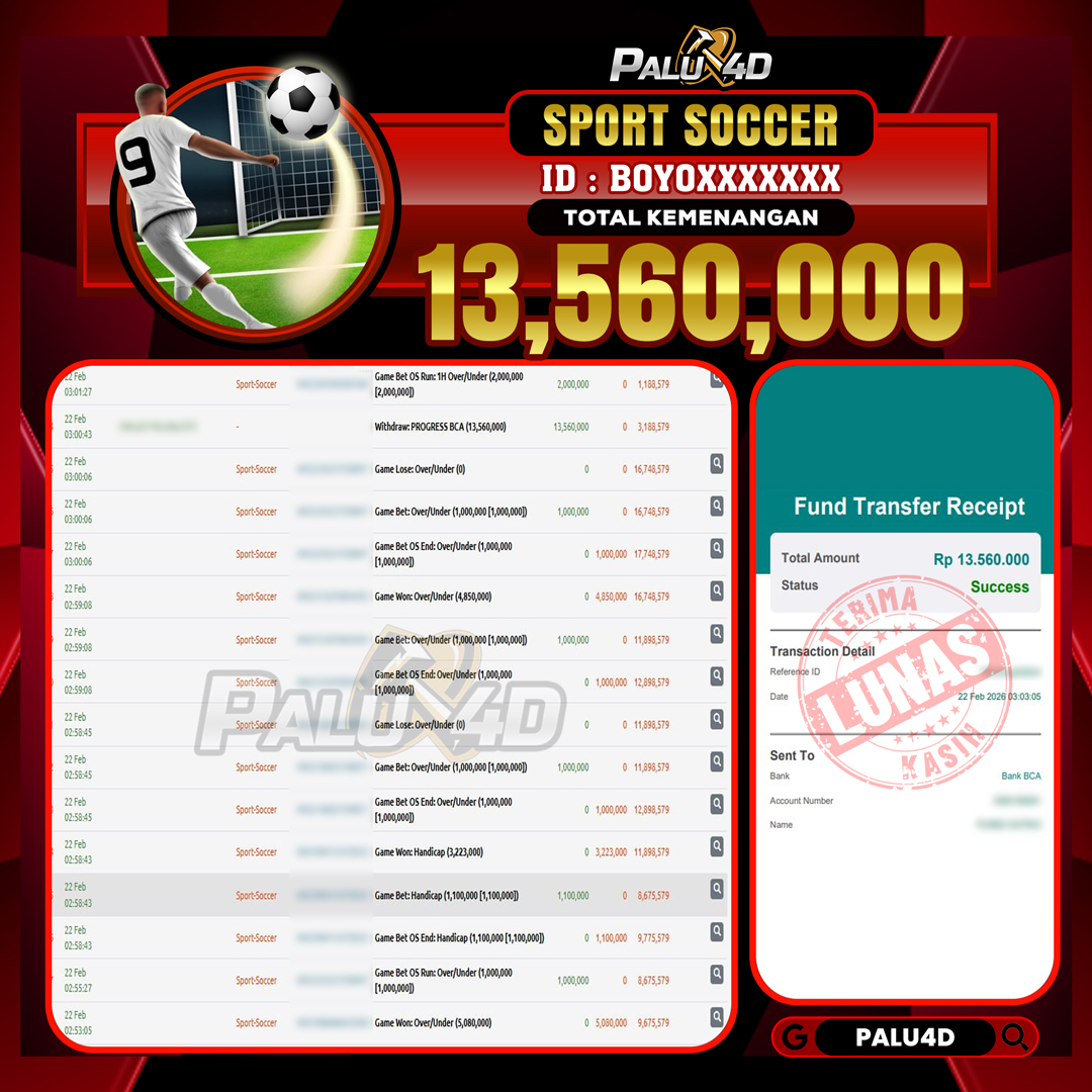 PALU4D – Menang SPORTBOOKS TARUHAN BOLA Rp.13.560.000.,- LUNAS
