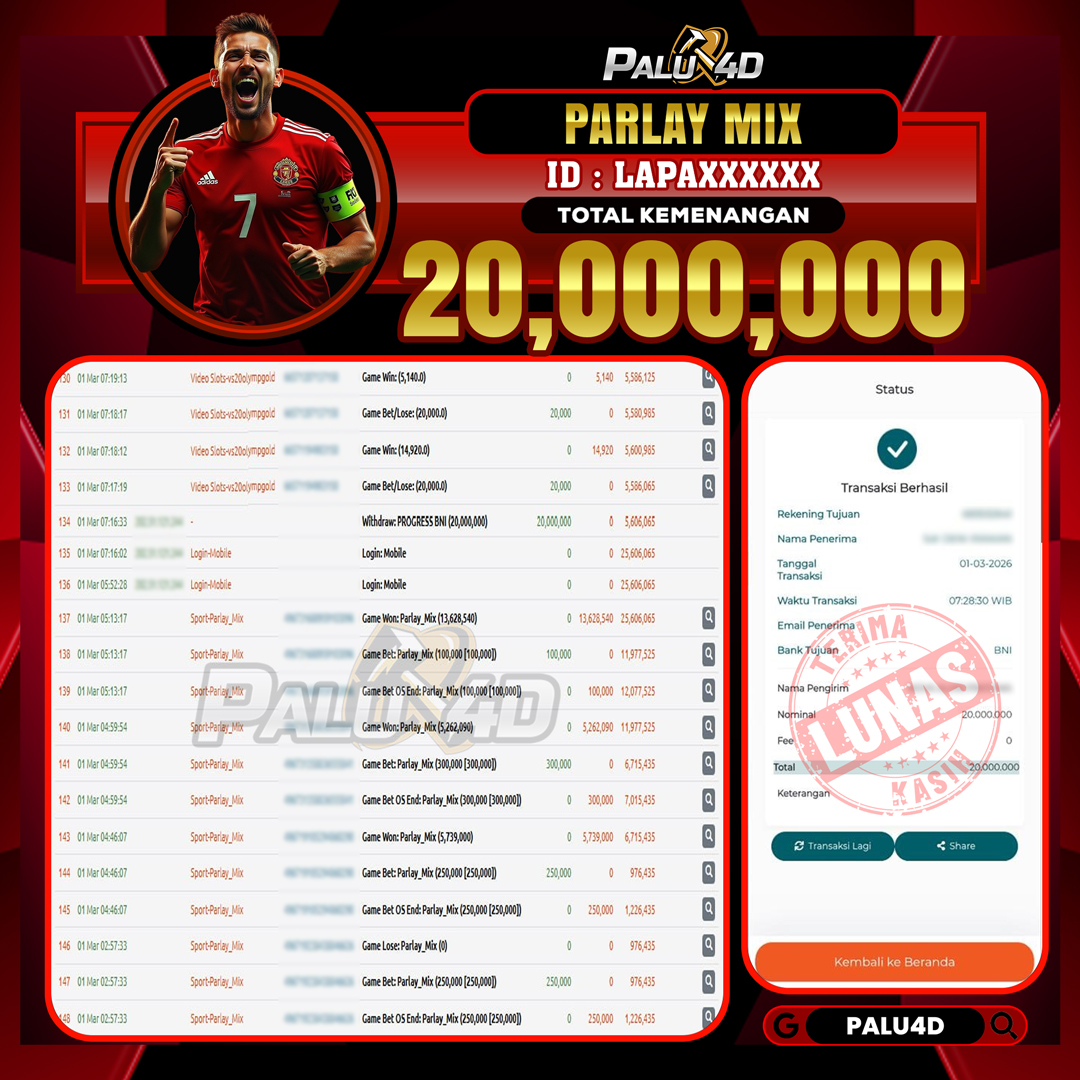 PALU4D – Menang SPORTBOOKS TARUHAN BOLA Rp.20.000.000.,- LUNAS PALU4D – Selamat bagi pemenang yang mendapatkan jackpot hari ini 01 MARET 2026 di game […]