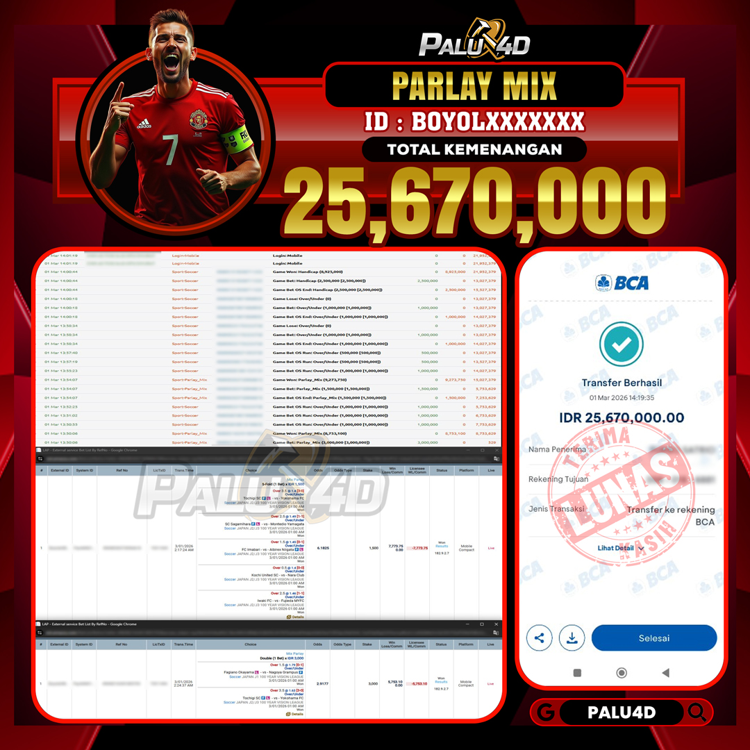 PALU4D – Menang SPORTBOOKS TARUHAN BOLA Rp.25.670.000.,- LUNAS