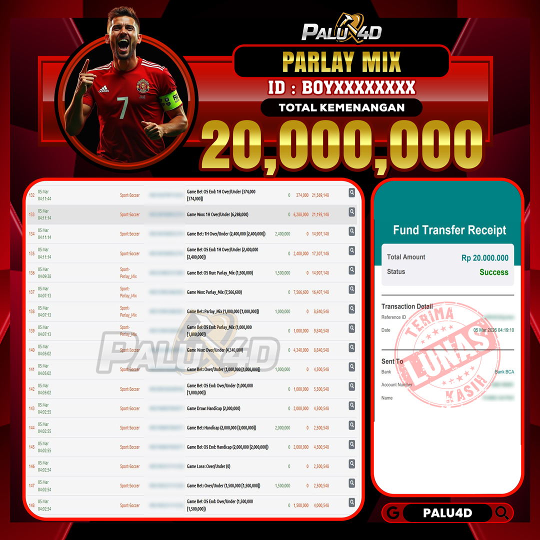 PALU4D – Menang SPORTBOOKS TARUHAN BOLA Rp.20.000.000.,- LUNAS