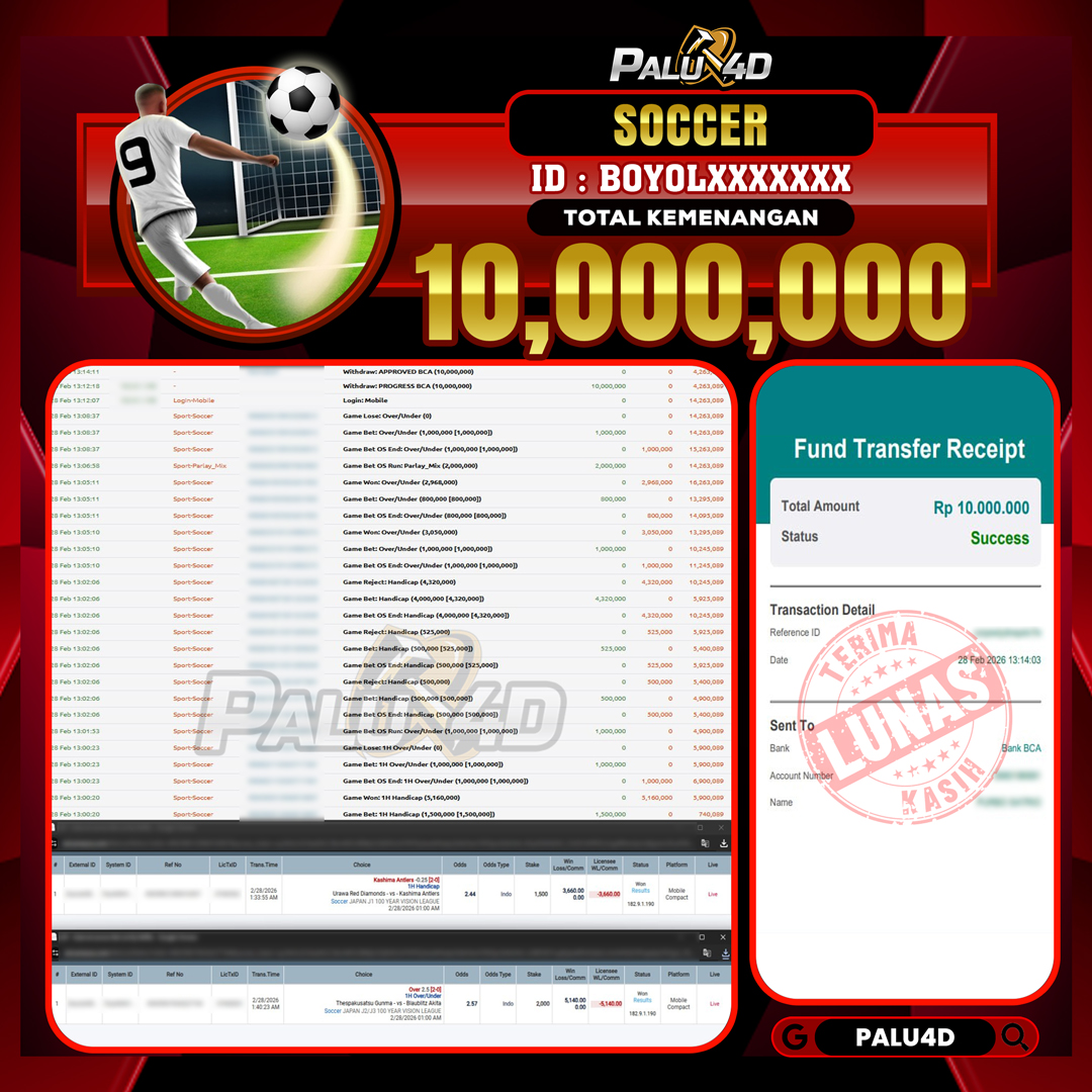PALU4D – Menang SPORTBOOKS TARUHAN BOLA Rp.10.000.000.,- LUNAS