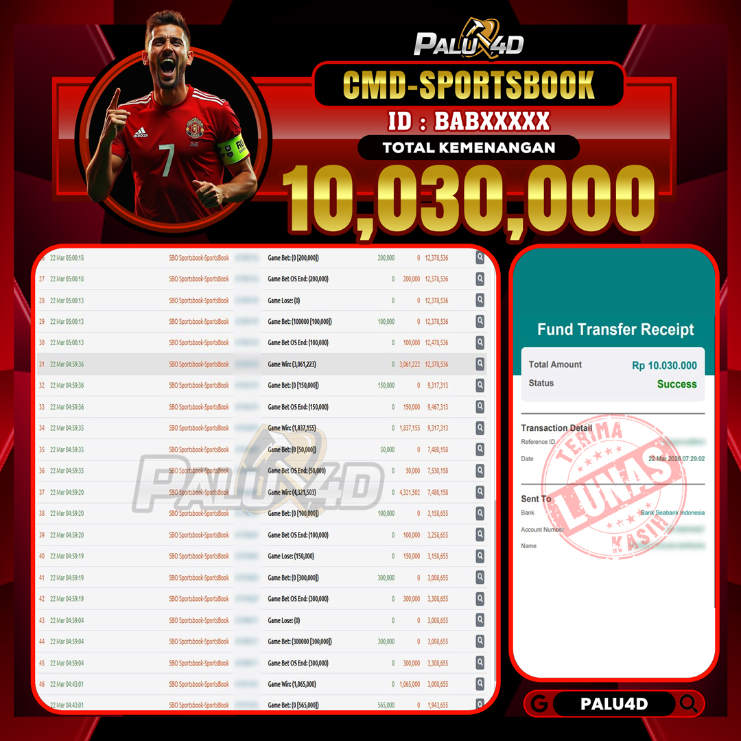 PALU4D – Menang SPORTBOOKS TARUHAN BOLA Rp.10.030.000.,- LUNAS