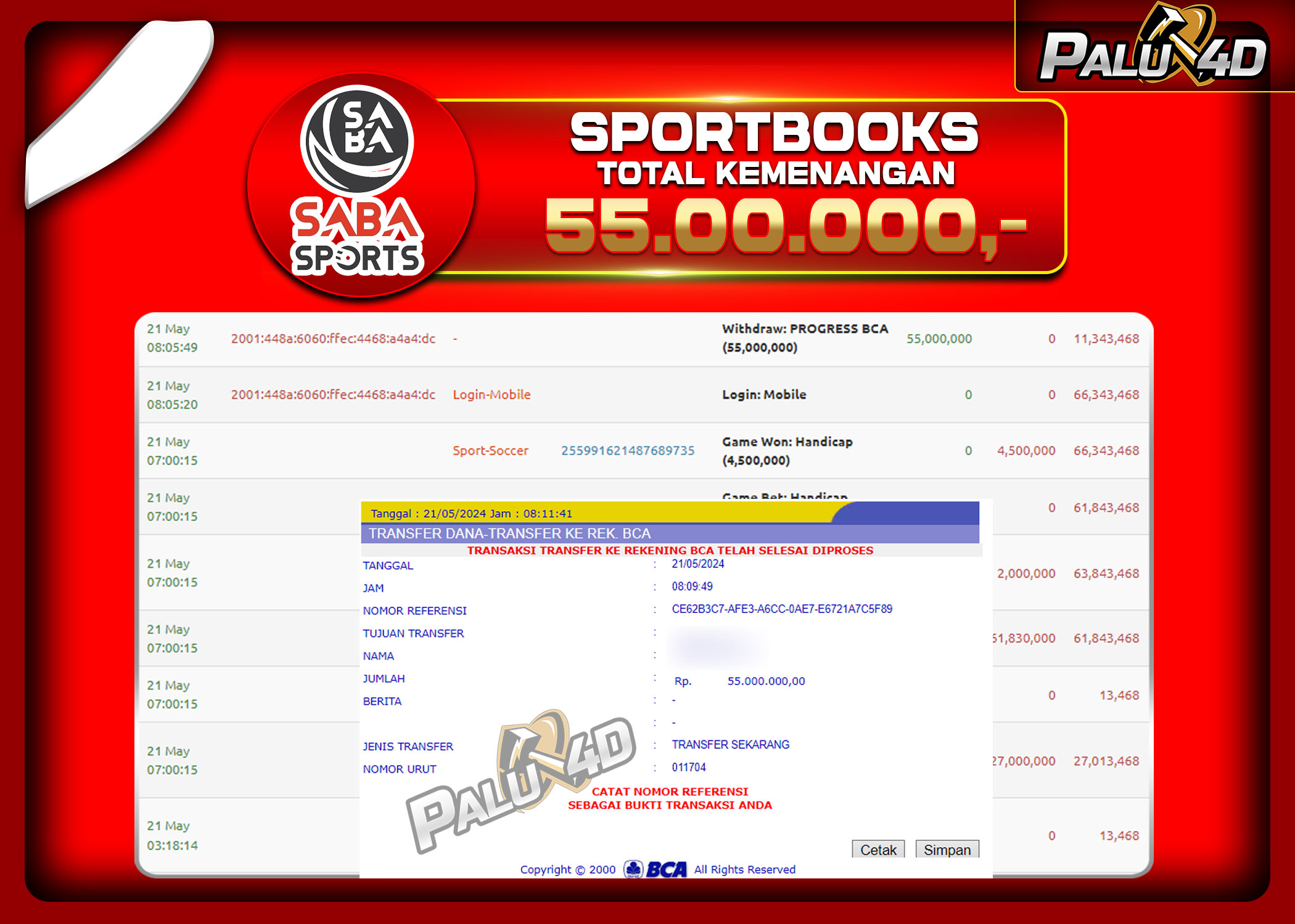 30/05/2024SPORTBOOK PALU4D – Menang SPORTBOOKS TARUHAN BOLA Rp.55.000.000.,- LUNAS PALU4D – Menang SPORTBOOKS TARUHAN BOLA Rp.55.000.000.,- LUNAS PALU4D – Selamat bagi pemenang yang mendapatkan jackpot hari ini 21 May 2024 di […]