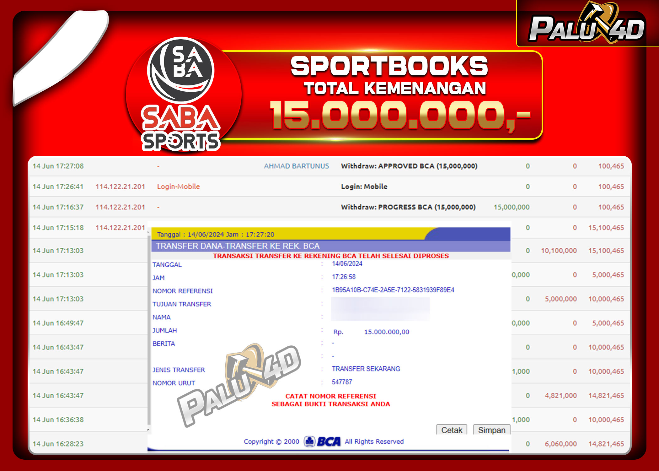 29/08/2024SPORTBOOK PALU4D – Menang SPORTBOOKS TARUHAN BOLA Rp.12.000.000.,- LUNAS PALU4D – Menang SPORTBOOKS TARUHAN BOLA Rp.12.000.000.,- LUNAS PALU4D – Selamat bagi pemenang yang mendapatkan jackpot hari ini 27 agustus 2024 di […]