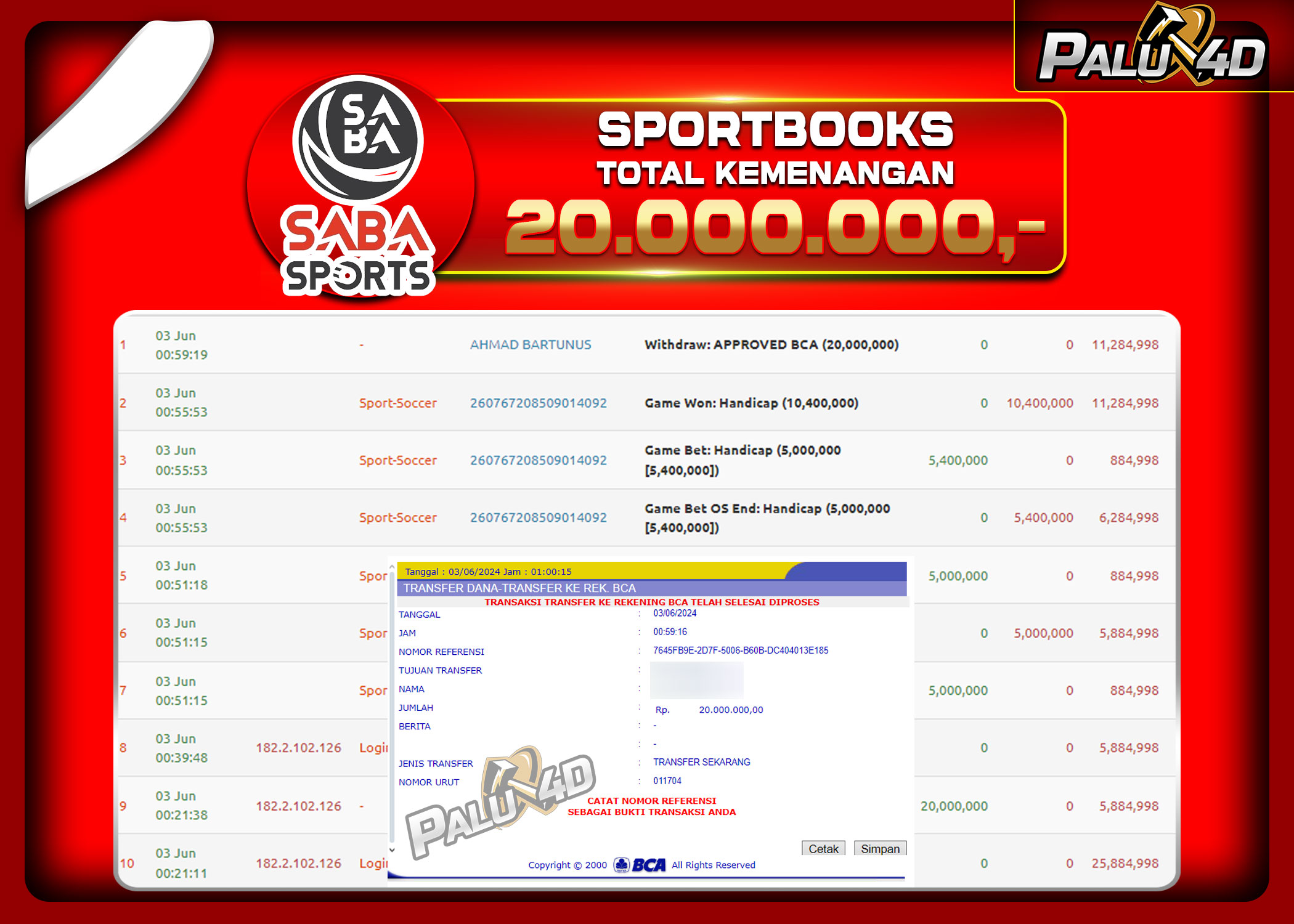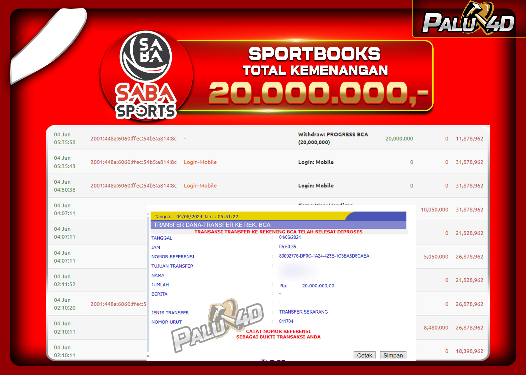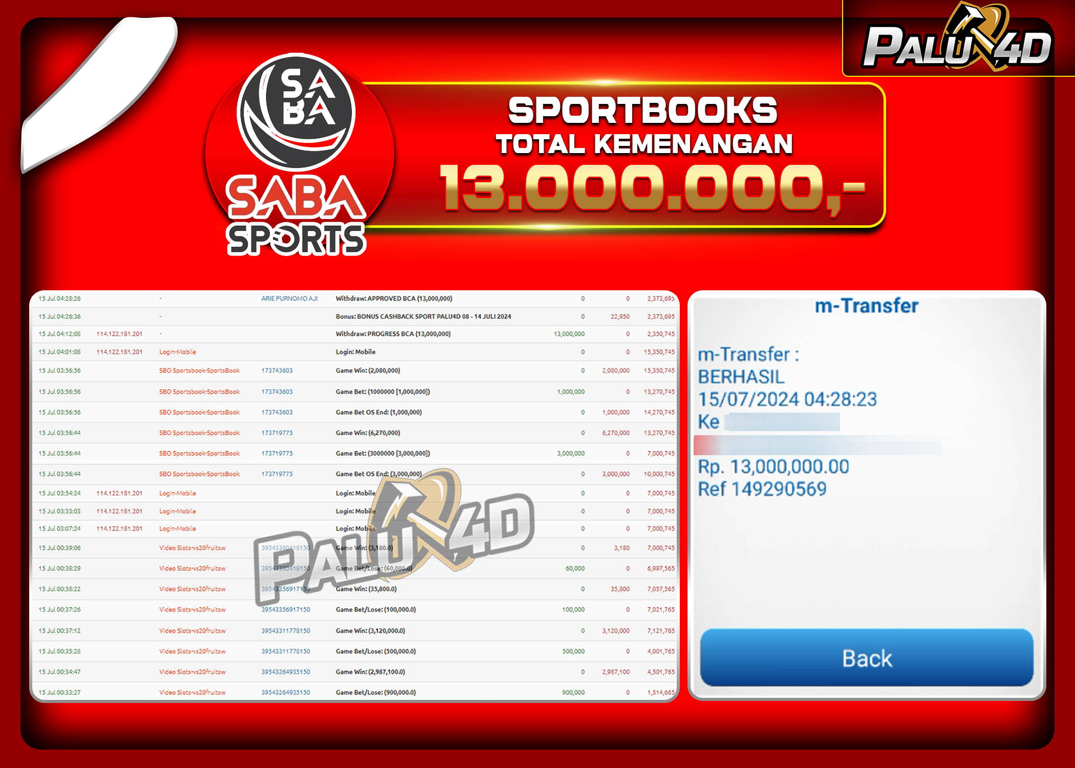 02/06/2024SPORTBOOK PALU4D – Menang SPORTBOOKS TARUHAN BOLA Rp.20.000.000.,- LUNAS PALU4D – Menang SPORTBOOKS TARUHAN BOLA Rp.20.000.000.,- LUNAS PALU4D – Selamat bagi pemenang yang mendapatkan jackpot hari ini 3 Juni 2024 di […]