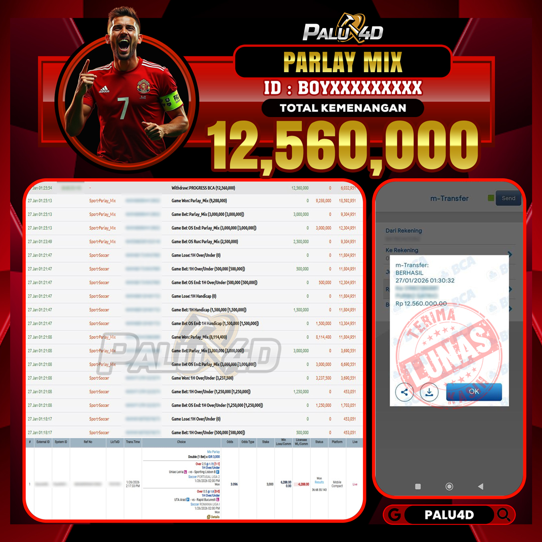 PALU4D – Menang SPORTBOOKS TARUHAN BOLA Rp.12.000.000.,- LUNAS