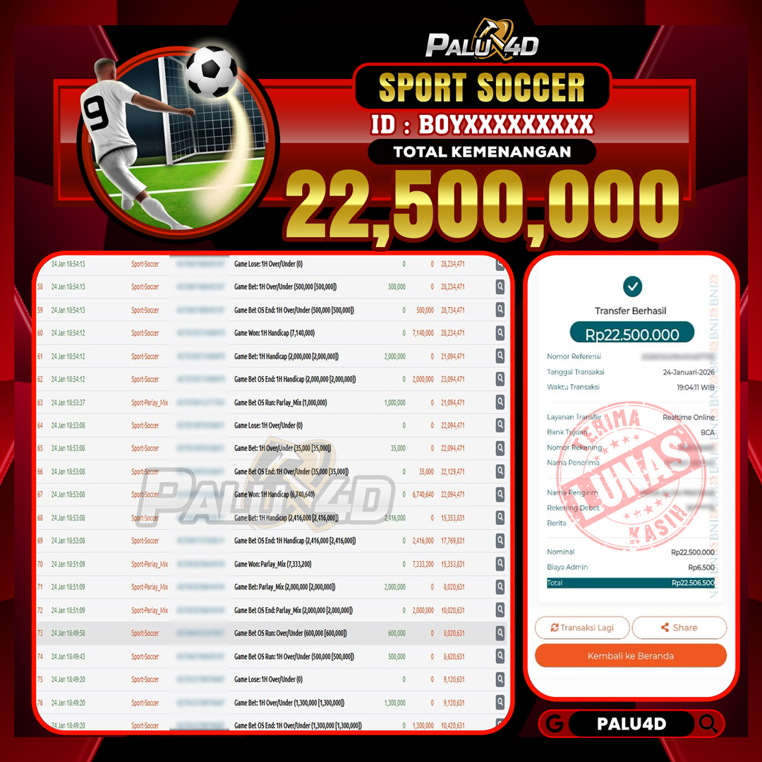 PALU4D – Menang SPORTBOOKS TARUHAN BOLA Rp.22.500.000.,- LUNAS