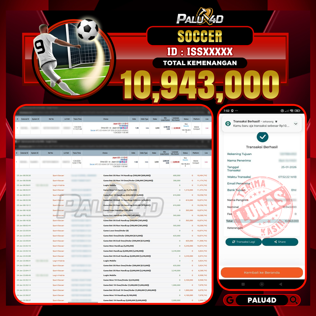 PALU4D – Menang SPORTBOOKS TARUHAN BOLA Rp.10.943.000.,- LUNAS