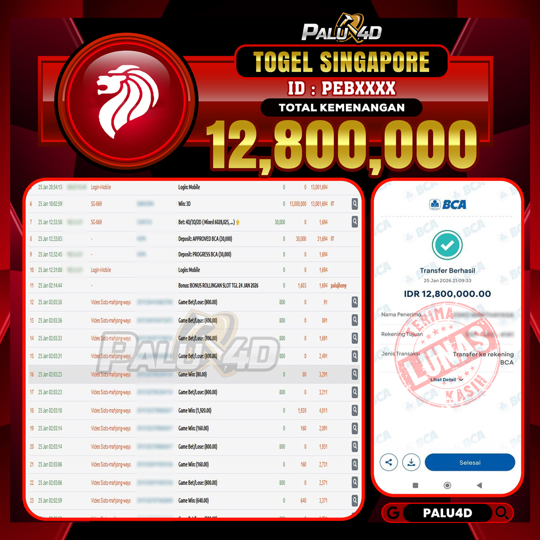 PALU4D – Menang SPORTBOOKS TARUHAN BOLA Rp.12.800.000.,- LUNAS PALU4D – Selamat bagi pemenang yang mendapatkan jackpot hari ini 25 JANUARI 2026 di game […]