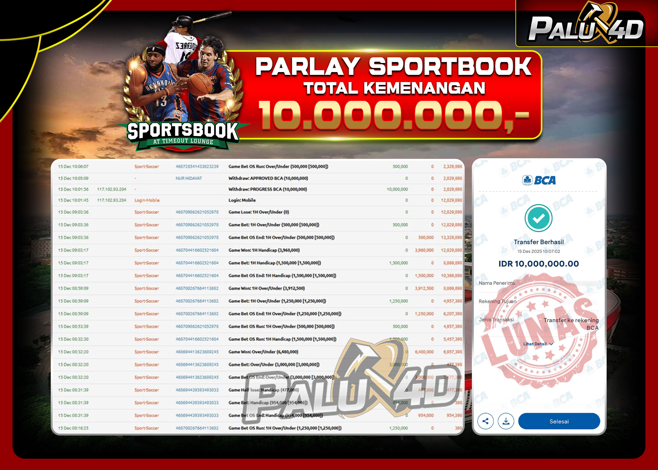PALU4D – Menang SPORTBOOKS TARUHAN BOLA Rp.10.000.000.,- LUNAS PALU4D – Selamat bagi pemenang yang mendapatkan jackpot hari ini 15 DESEMBER 2025 di […]
