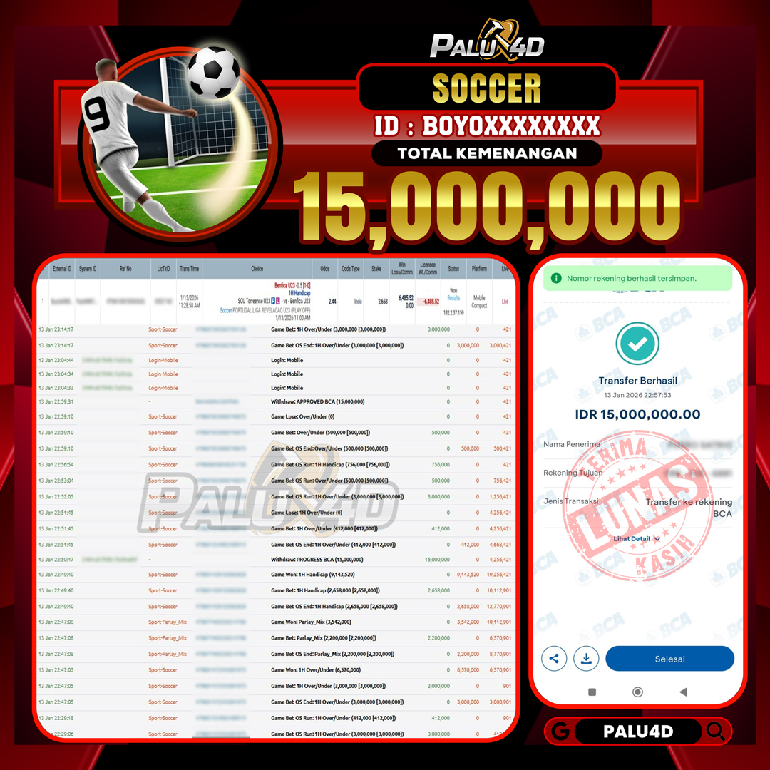 PALU4D – Menang SPORTBOOKS TARUHAN BOLA Rp.15.000.000.,- LUNAS PALU4D – Selamat bagi pemenang yang mendapatkan jackpot hari ini 13 JANUARI 2026 di game […]