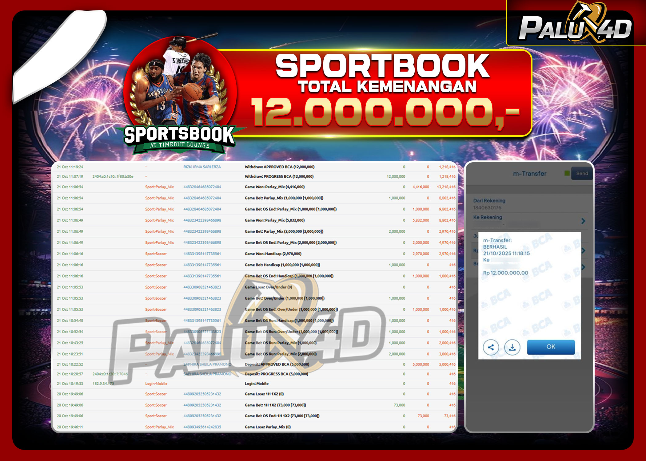 PALU4D – Menang SPORTBOOKS TARUHAN BOLA Rp.12.000.000.,- LUNAS