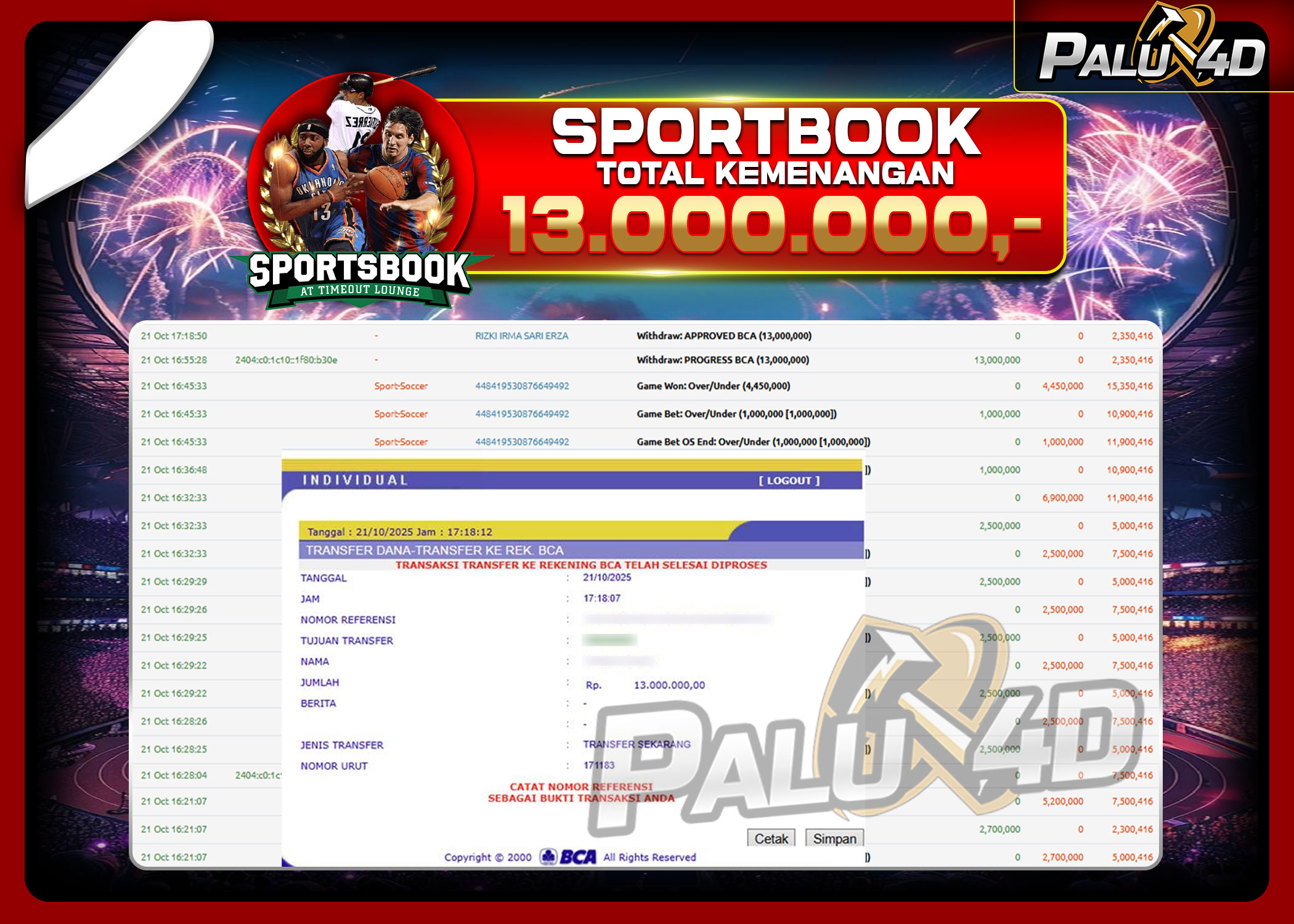 PALU4D – Menang SPORTBOOKS TARUHAN BOLA Rp.13.000.000.,- LUNAS