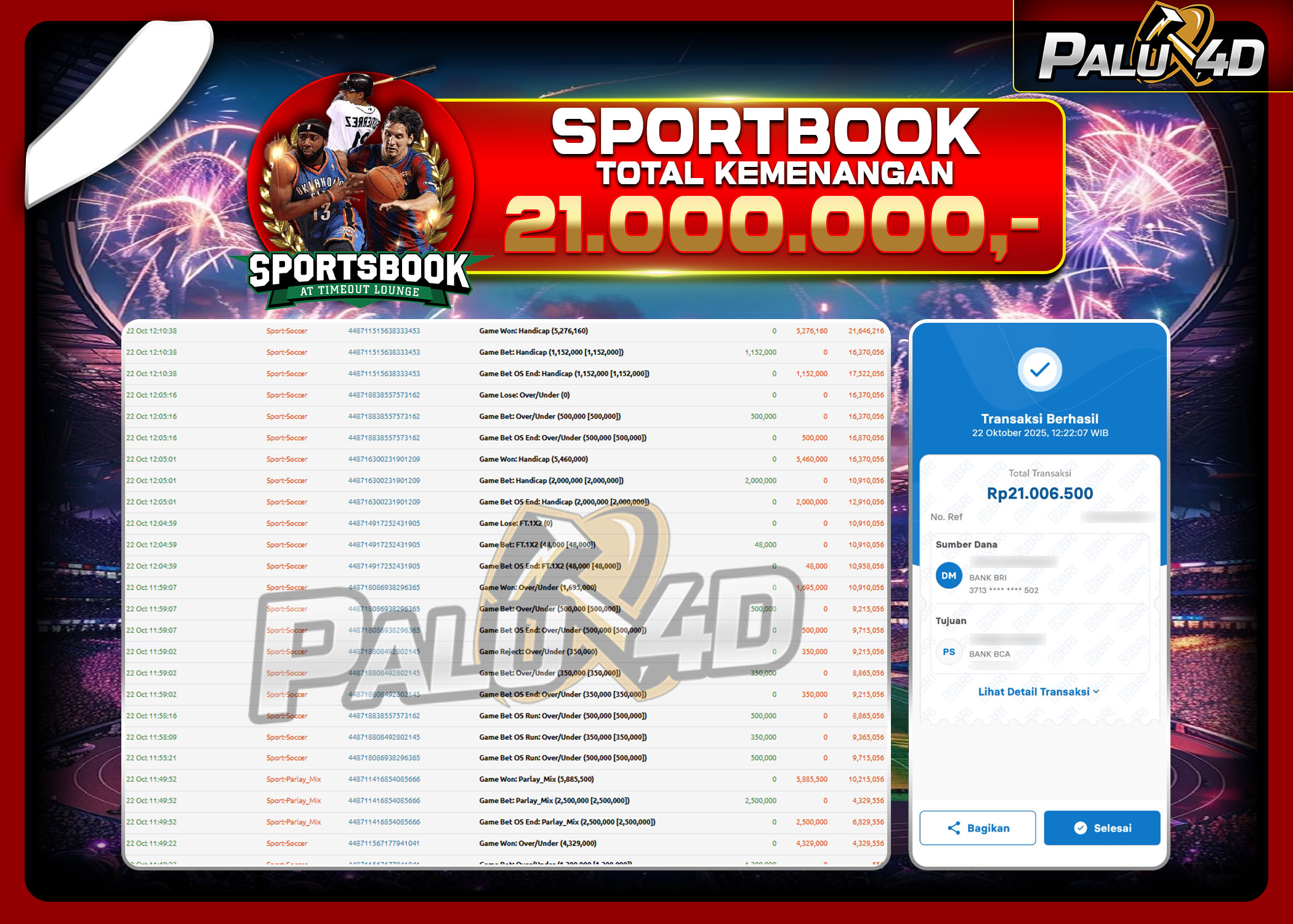 PALU4D – Menang SPORTBOOKS TARUHAN BOLA Rp.21.000.000.,- LUNAS