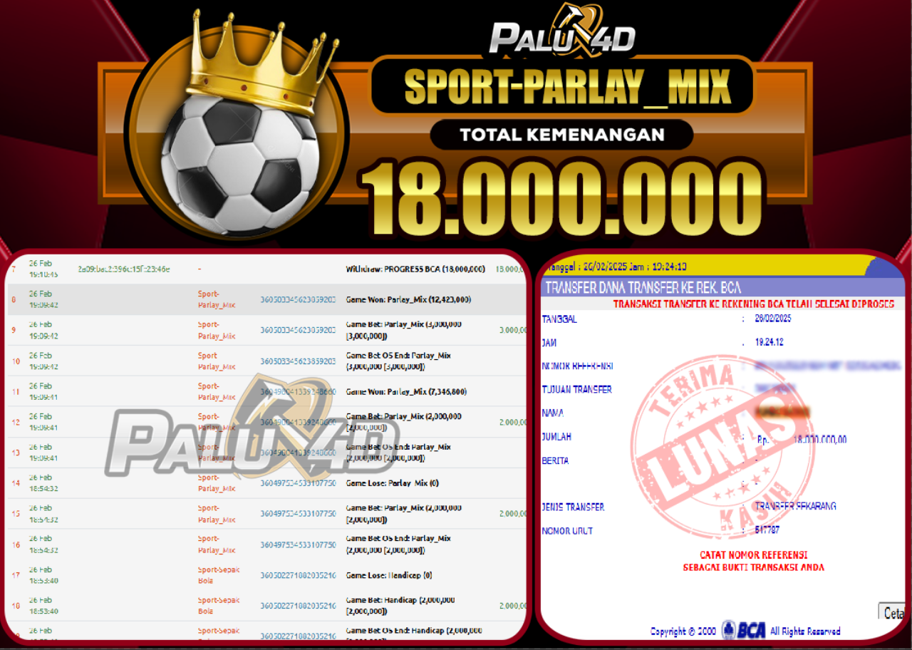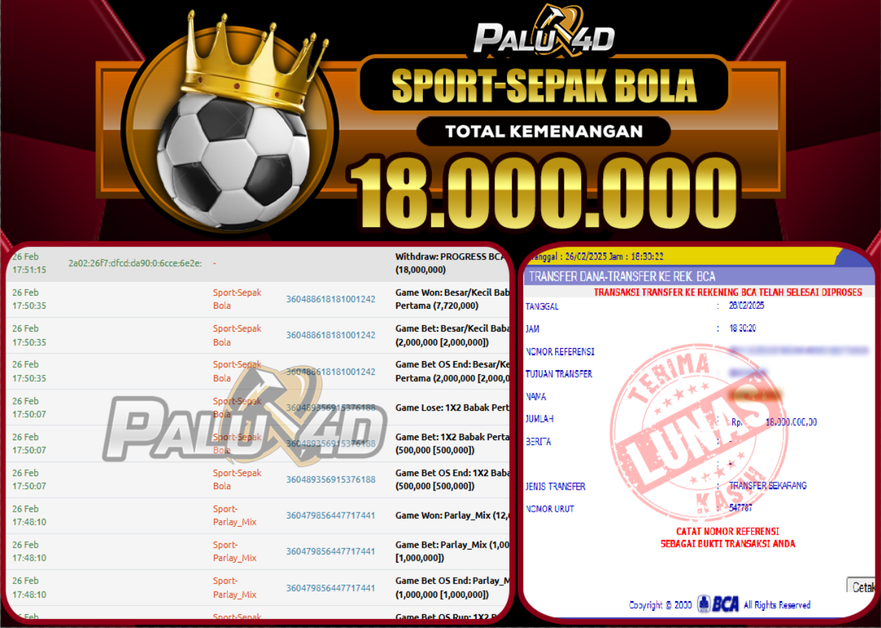 PALU4D – Menang SPORTBOOKS TARUHAN BOLA Rp.18.000.000.,- LUNAS