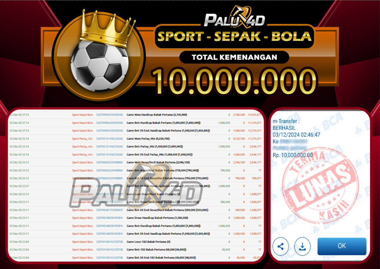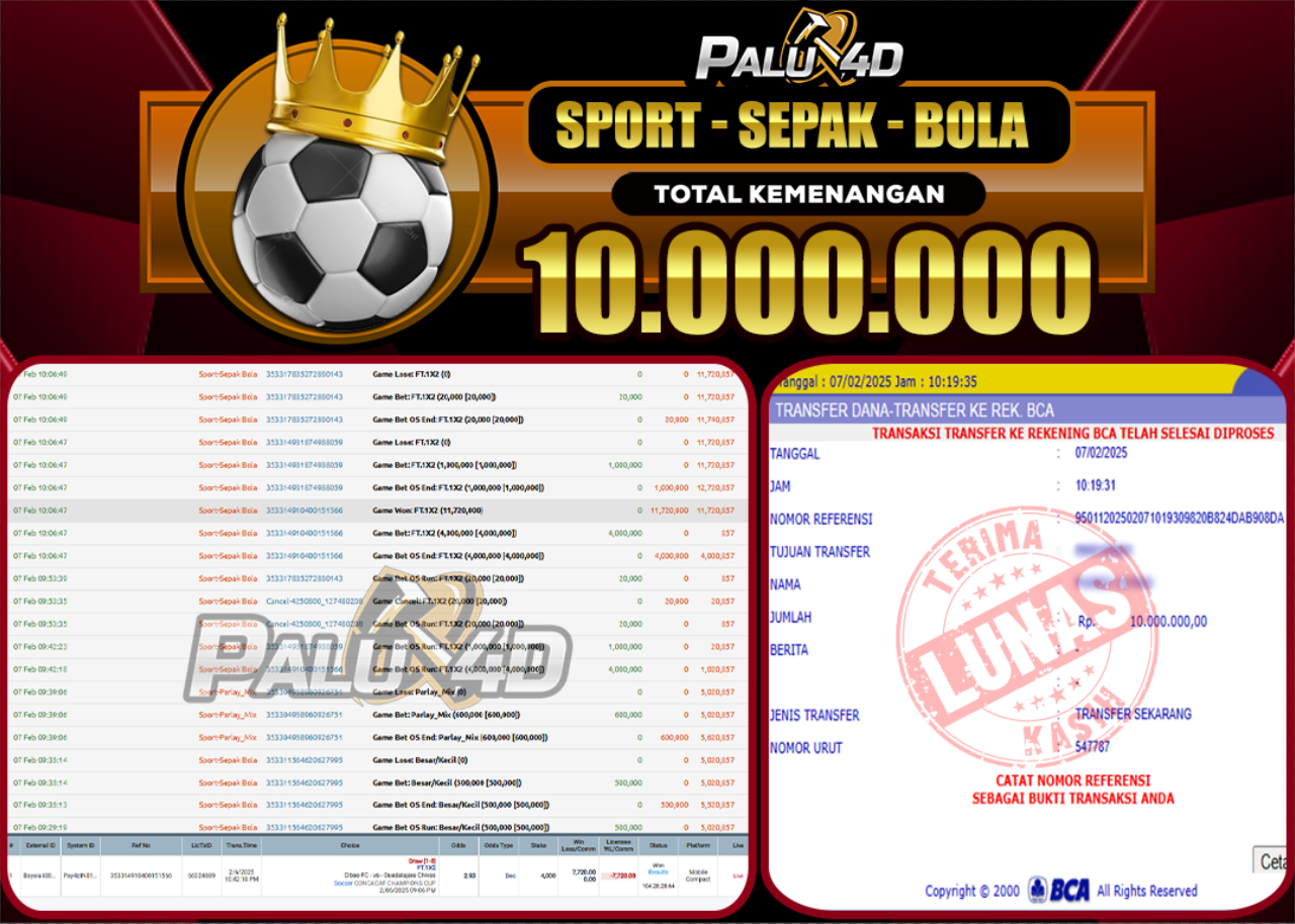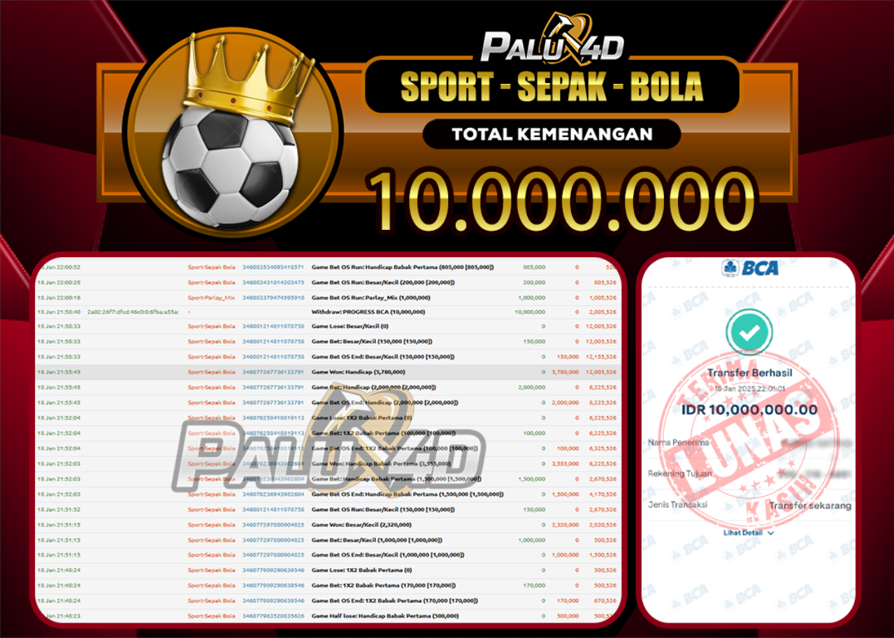 PALU4D – Menang SPORTBOOKS TARUHAN BOLA Rp.10.000.000.,- LUNAS