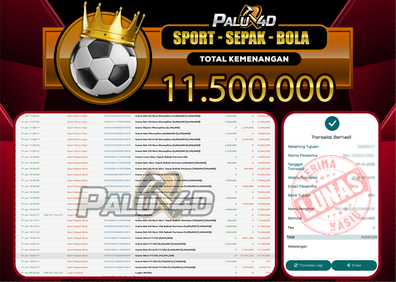 PALU4D – Menang SPORTBOOKS TARUHAN BOLA Rp.11.500.000.,- LUNAS