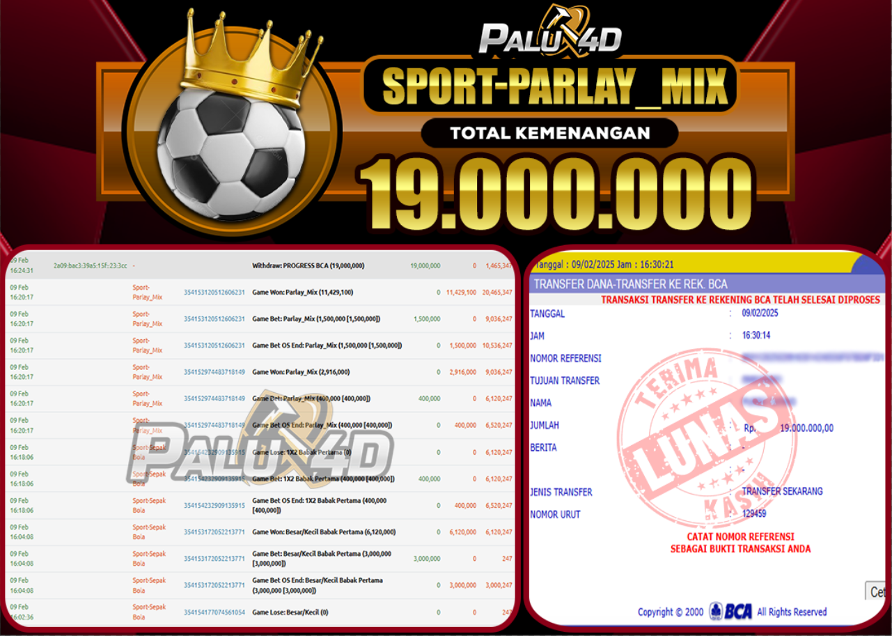 PALU4D – Menang SPORTBOOKS TARUHAN BOLA Rp.19.000.000.,- LUNAS