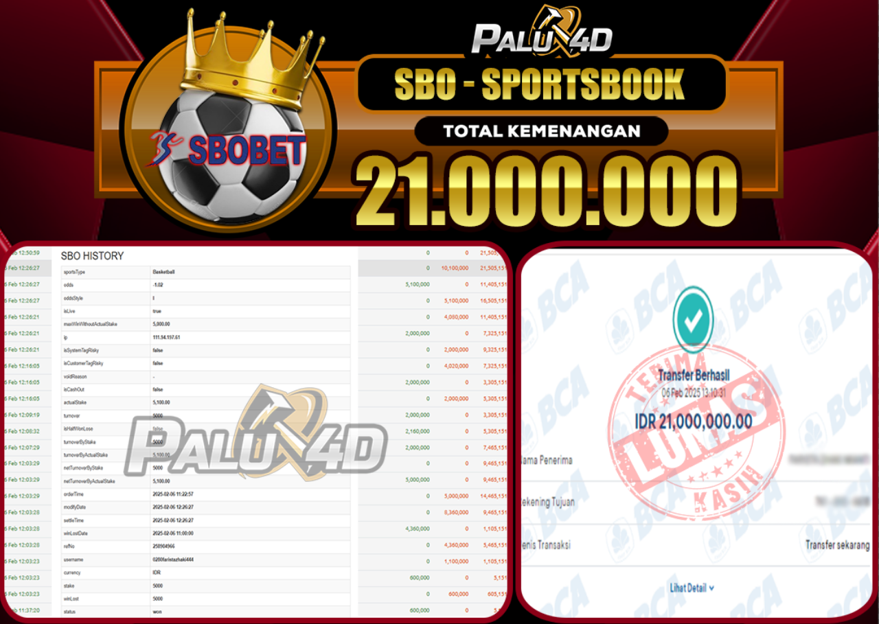 PALU4D – Menang SPORTBOOKS TARUHAN BOLA Rp.21.000.000.,- LUNAS