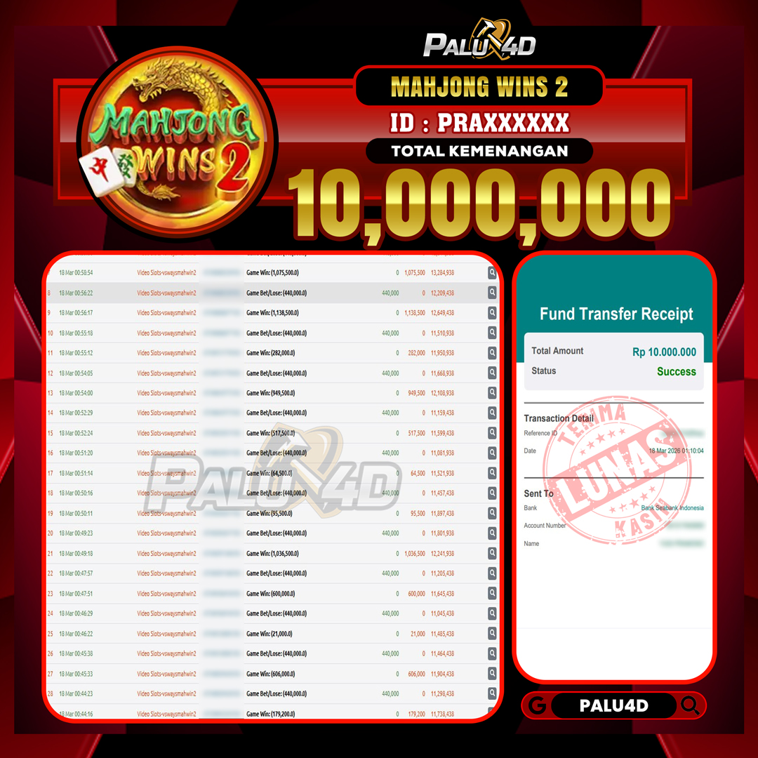 PALU4D – Menang Slot MAHJONG WINS 2 Rp.10.000.000.,- LUNAS