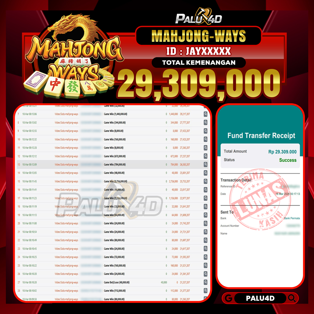 PALU4D – Menang Slot MAHJONG-WAYS Rp.29.309.000.,- LUNAS