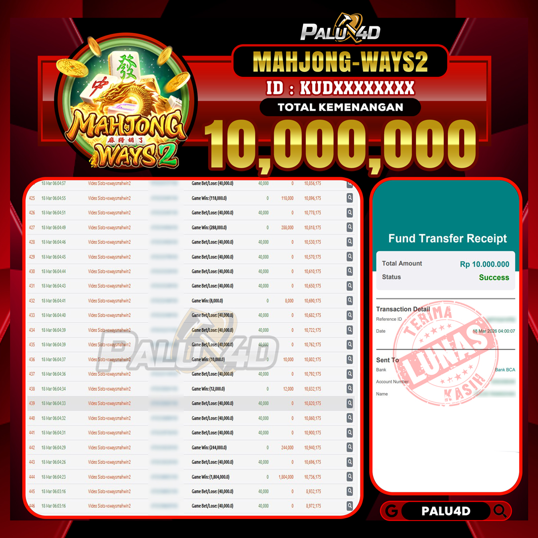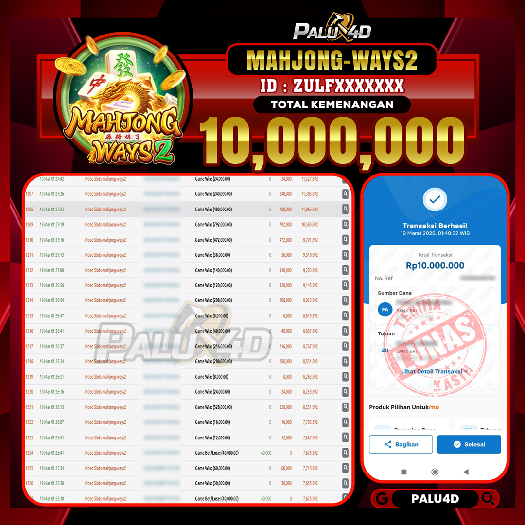 PALU4D – Menang Slot MAHJONG-WAYS2 Rp.10.000.000.,- LUNAS