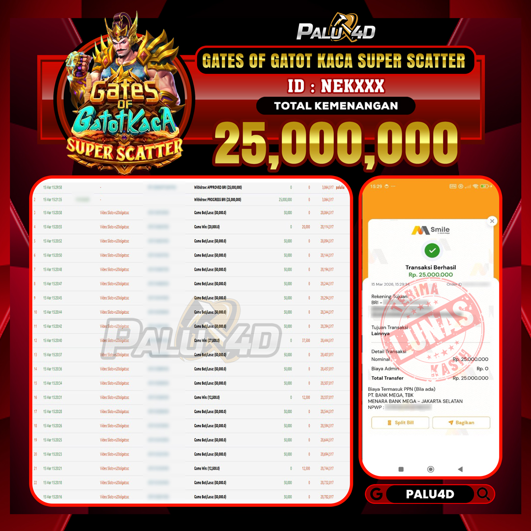 PALU4D – Menang Slot GATES OF GATOT KACA SUPER SCATTER Rp25.000.000.,- LUNAS