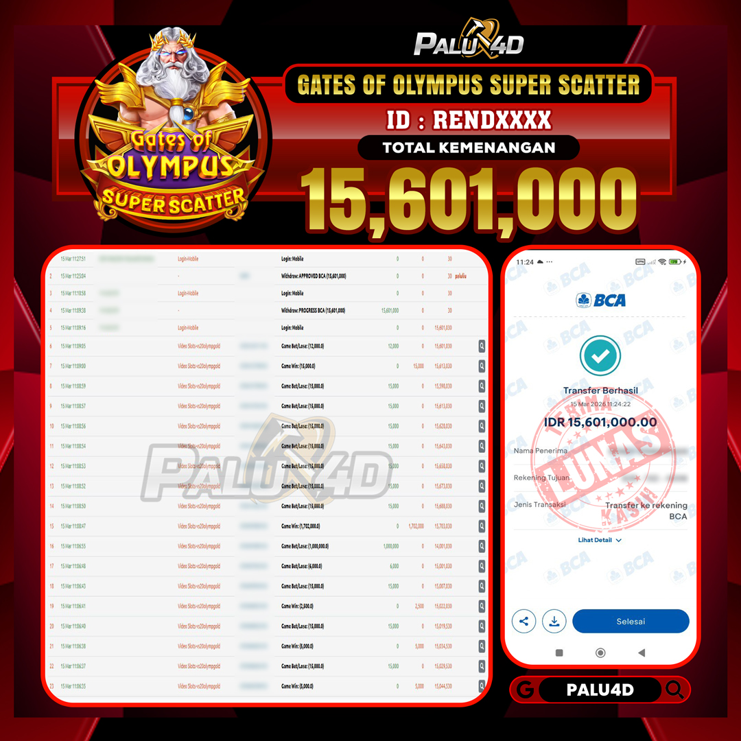 PALU4D – Menang Slot GATES OF OLYMPUS SUPER SCATTER Rp.15.601.000.,- LUNAS