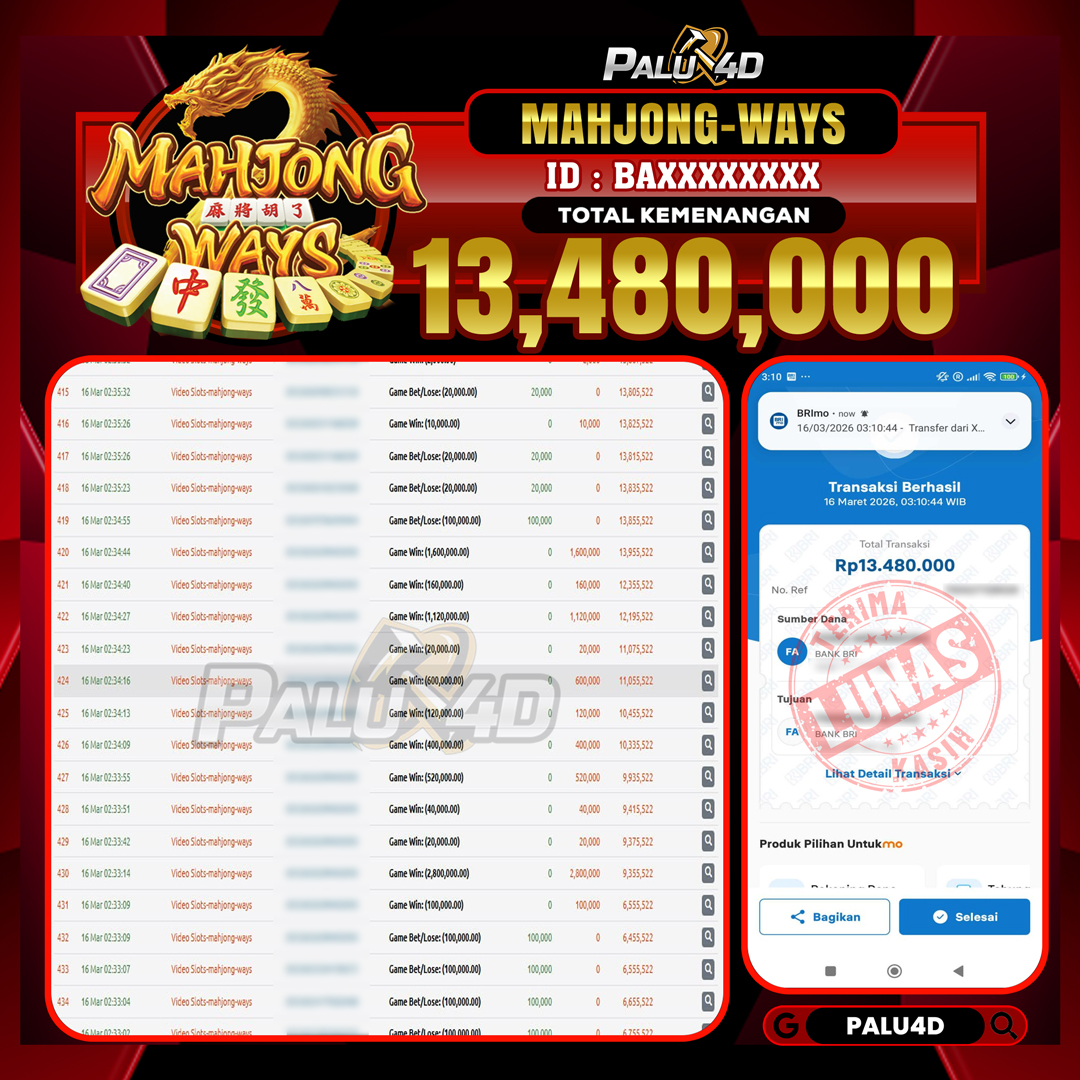 PALU4D – Menang Slot MAHJONG-WAYS Rp.13.480.000.,- LUNAS