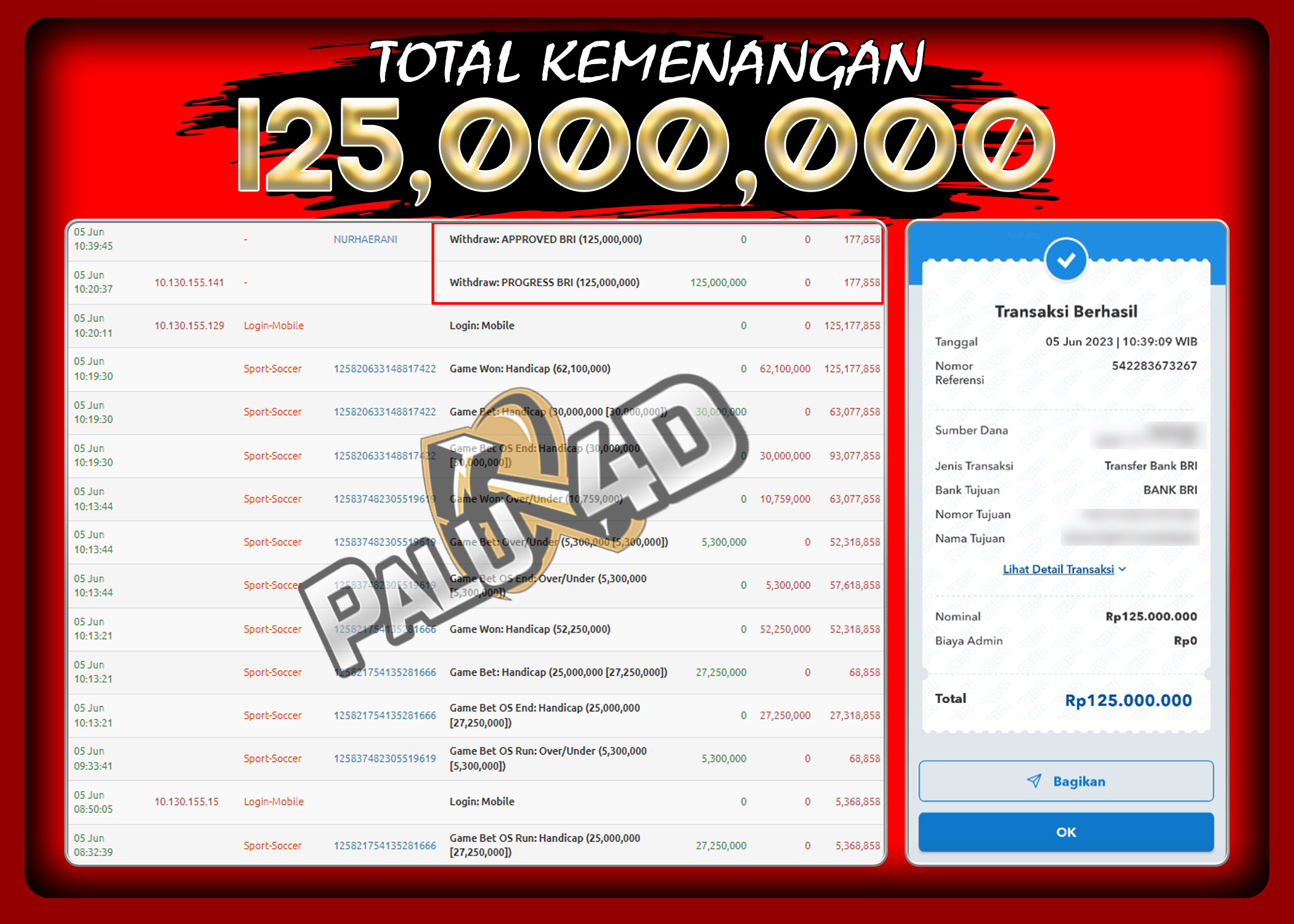 PALU4D – Menang Sportbook TARUHAN BOLA Rp.125.000.000.,- LUNAS