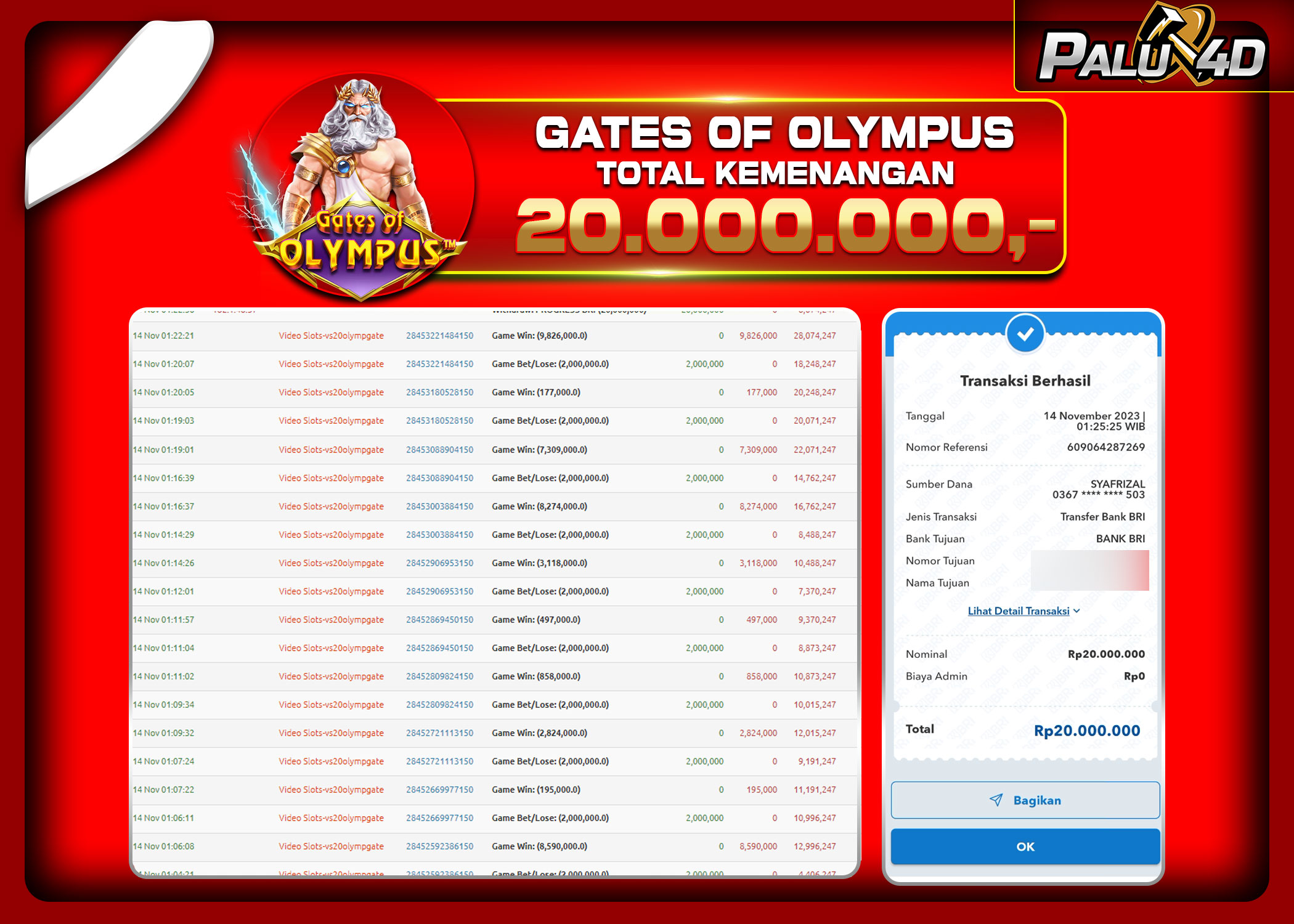 PALU4D – Menang Slot GATE OF OLYMPUS Rp.20.000.000.,- LUNAS