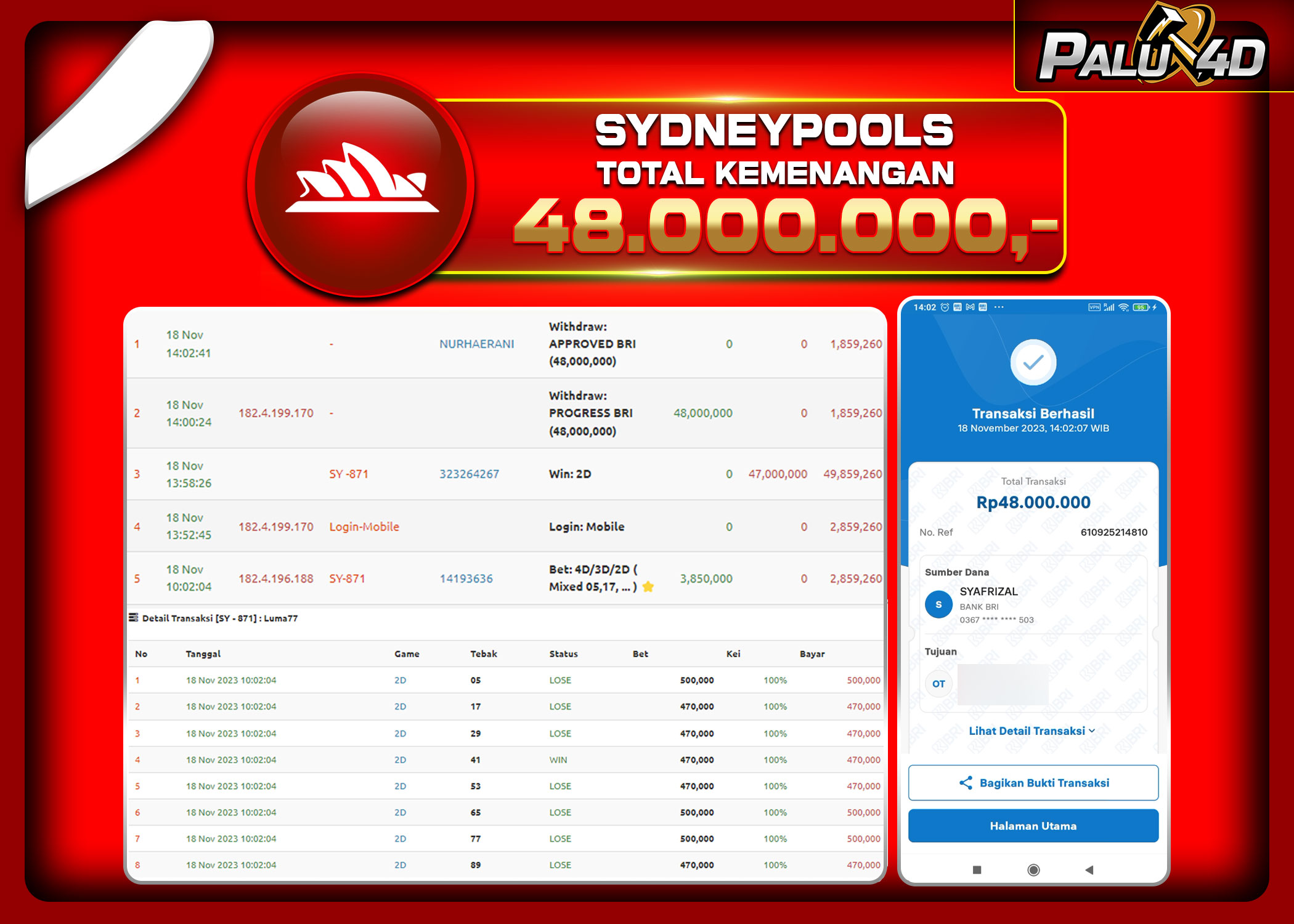 • PALU4D – Menang Togel SYDNEY POOL Rp.10.000.000.,- LUNAS