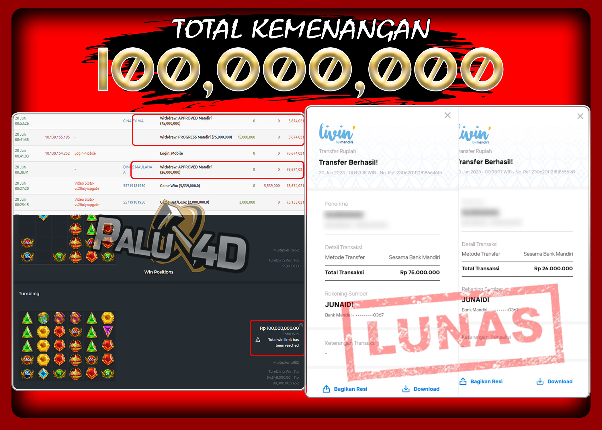 PALU4D – Menang Slot GATE OF OLYMPUS Rp.100.000.000.,- LUNAS
